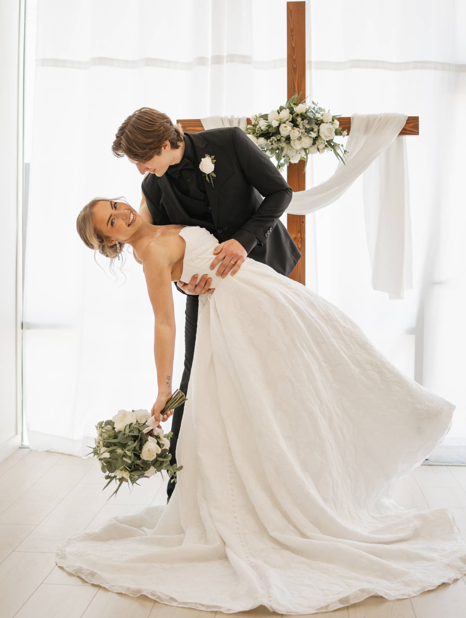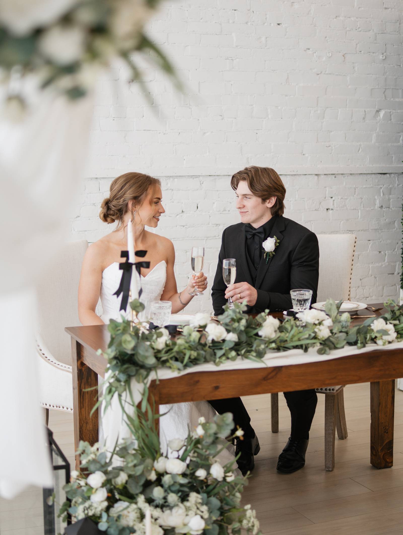 Black tie weddings are often associated with tradition, but today’s couples are redefining what formal can look like. Clean lines, sculpted silhouettes, contour-cut details, and lush décor in gold and white prove that luxury doesn’t have to feel old-fashioned. This Modern Black Tie editorial, brought together by a talented team of local vendors, embraces the elegance of a classic black-tie affair while infusing it with modern artistry and personal style.