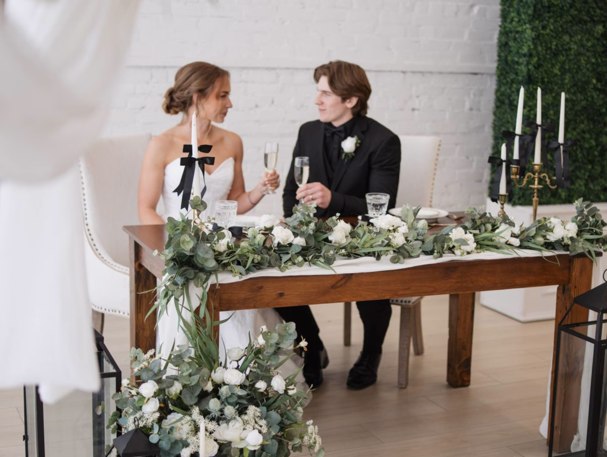 Black tie weddings are often associated with tradition, but today’s couples are redefining what formal can look like. Clean lines, sculpted silhouettes, contour-cut details, and lush décor in gold and white prove that luxury doesn’t have to feel old-fashioned. This Modern Black Tie editorial, brought together by a talented team of local vendors, embraces the elegance of a classic black-tie affair while infusing it with modern artistry and personal style.