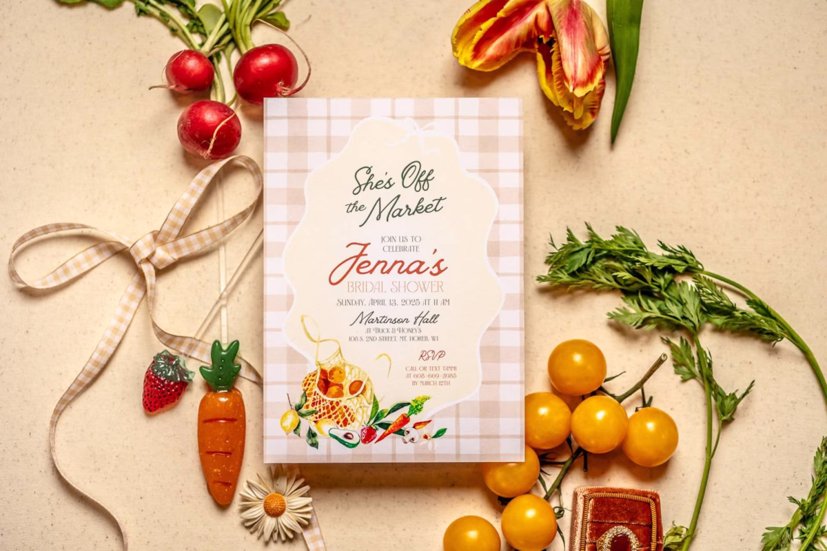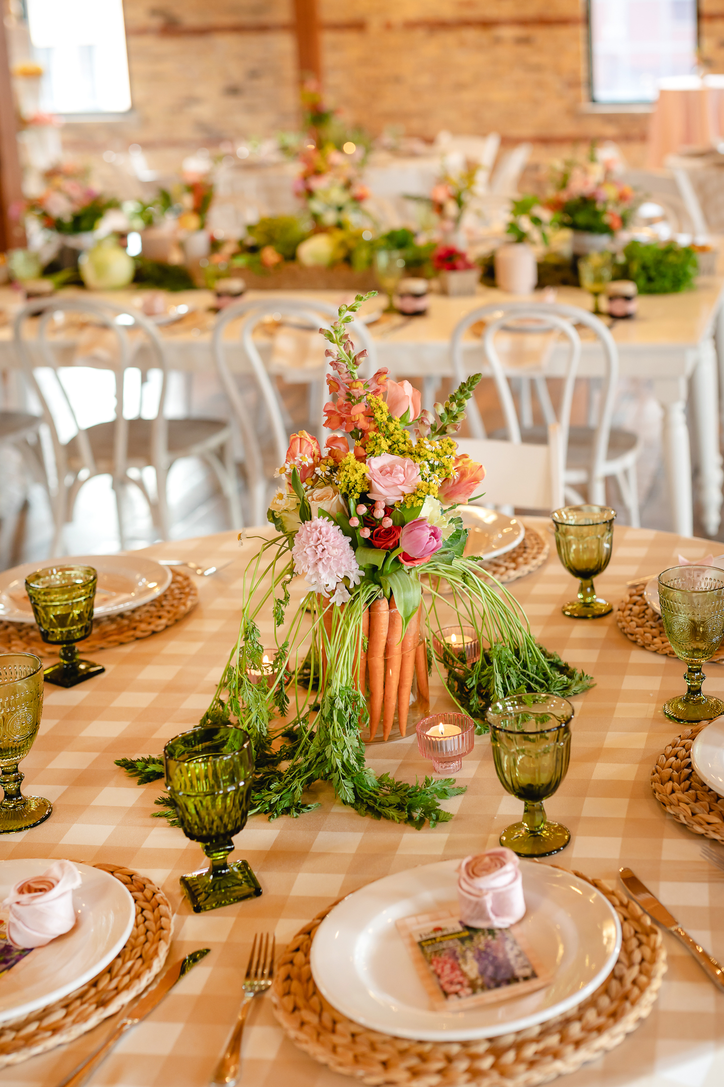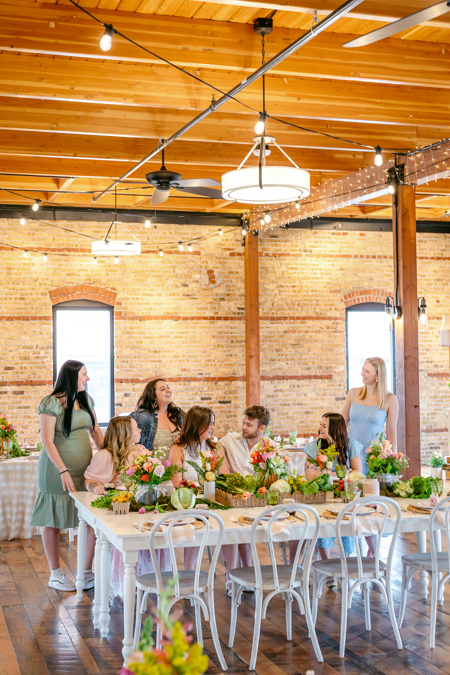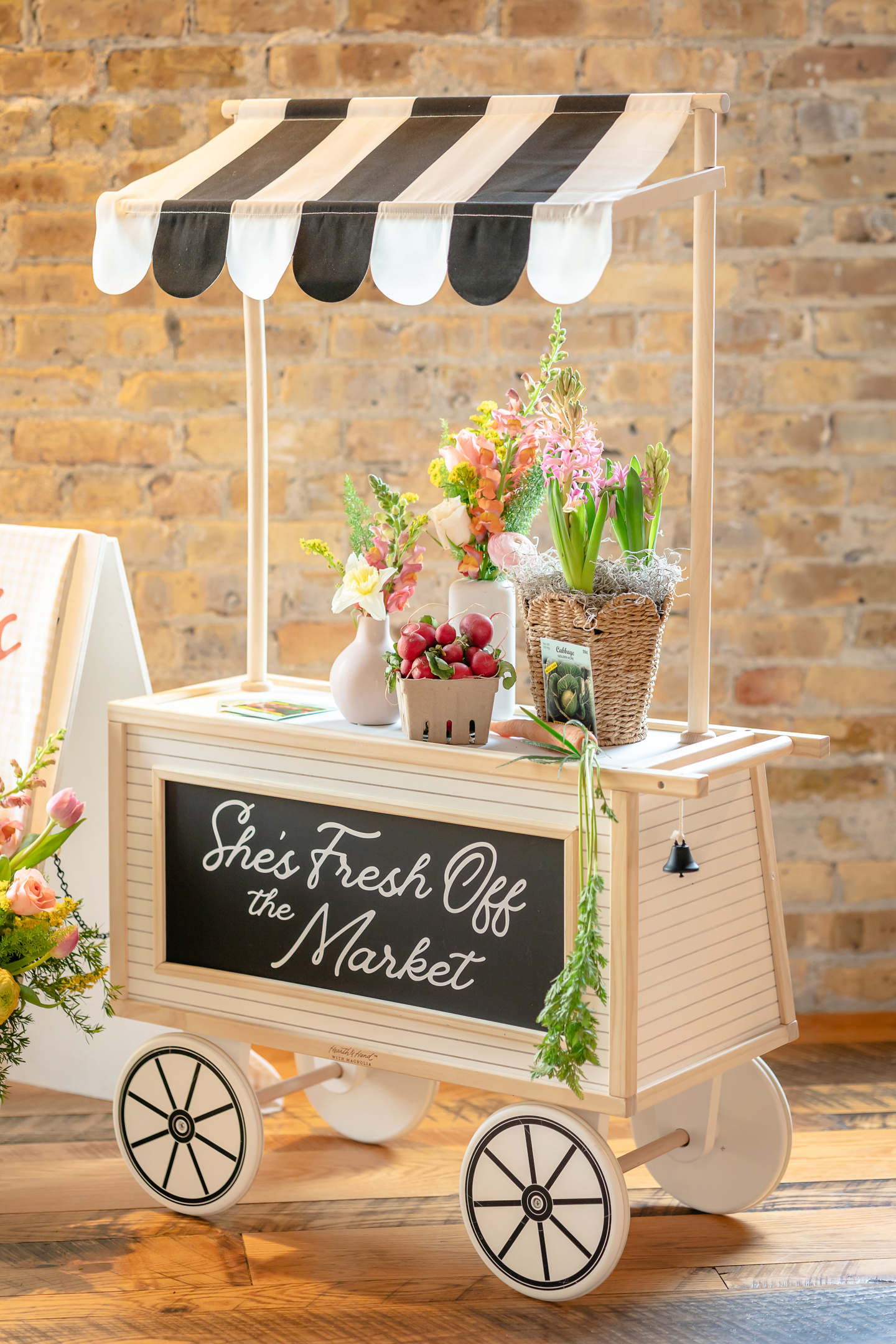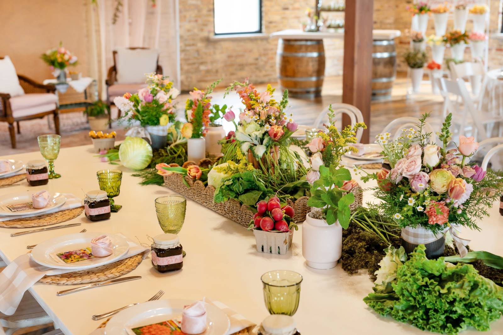 This “She’s Fresh off the Market” bridal shower was a cheerful and stylish nod to all things fresh, local, and lovely. Held at Martinson Hall at Buck & Honey’s, the day featured garden-inspired florals, creative food presentations, and thoughtful décor that brought the farmer’s market theme to life!