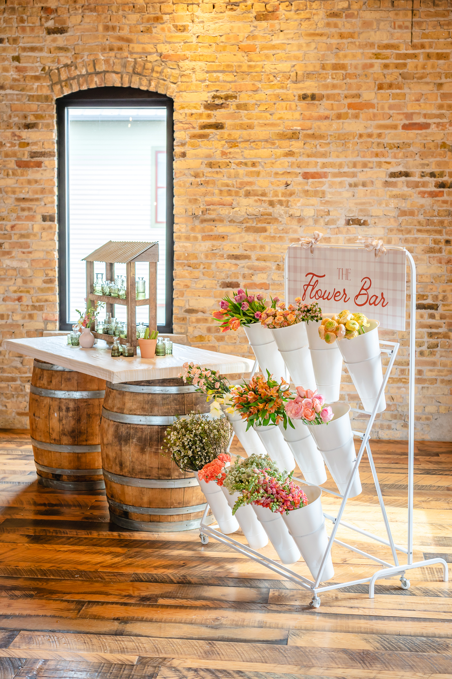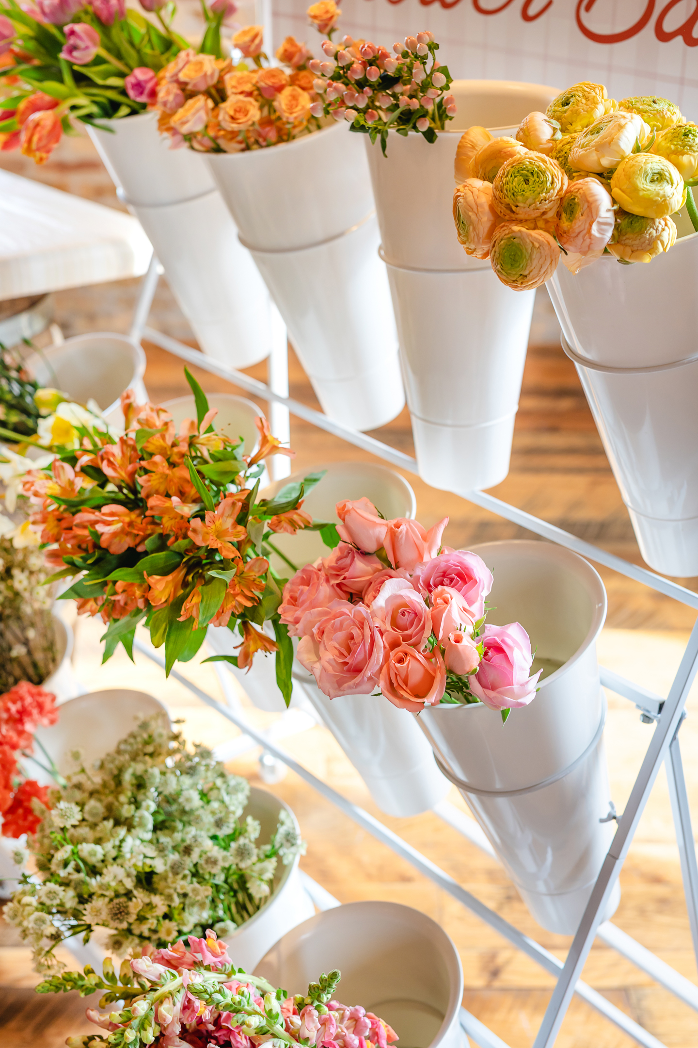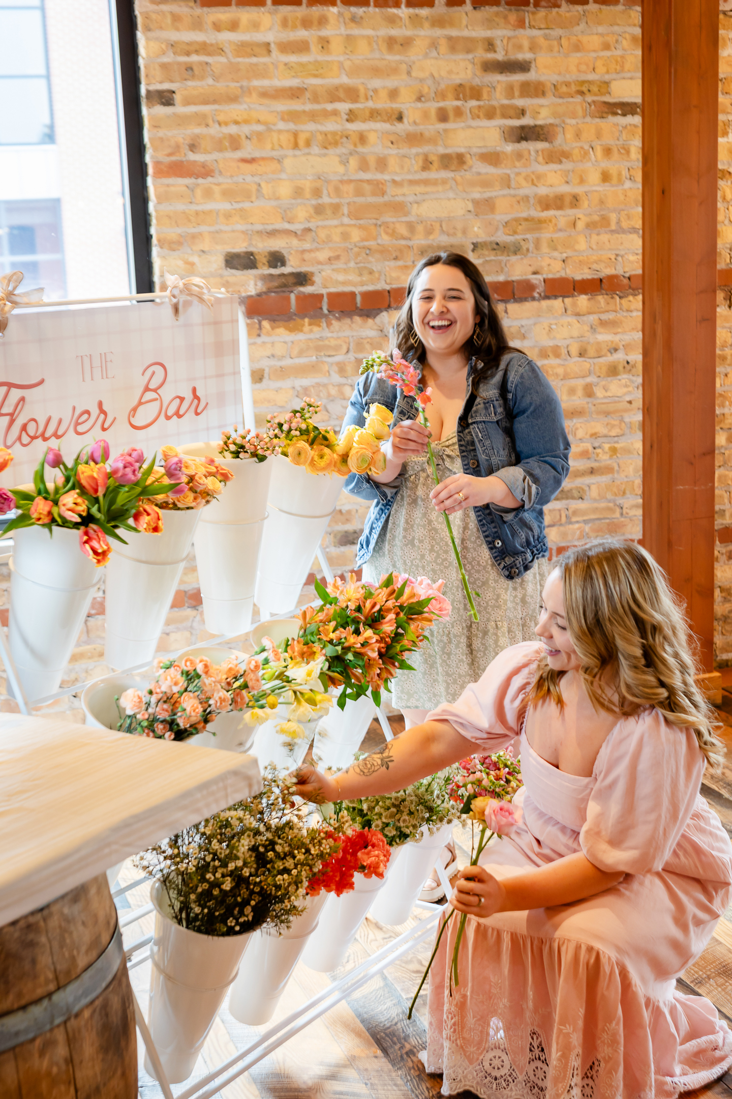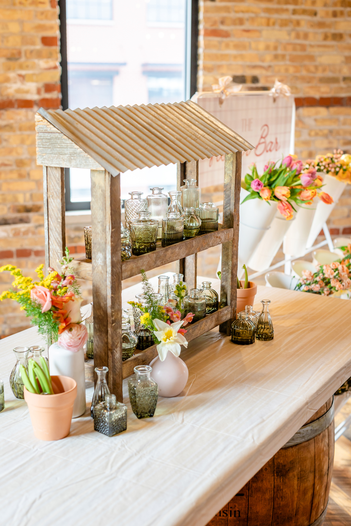 After a gift opening in the cozy lounge area, the backdrop transformed into the perfect space for selfies and group photos between visits to the flower bar. Favors included seed packets, fresh jams, an adorable tote bag, and bud vases guests could trim, fill, and arrange themselves–or with a little help from the experts.
