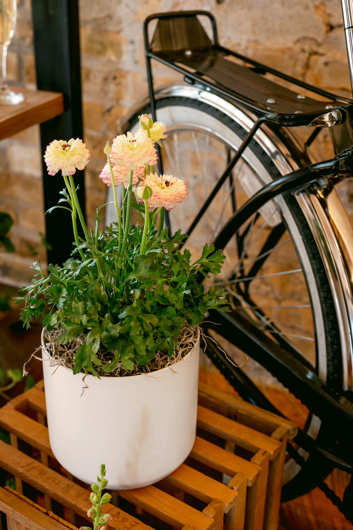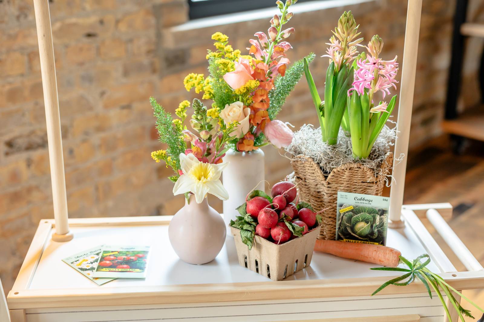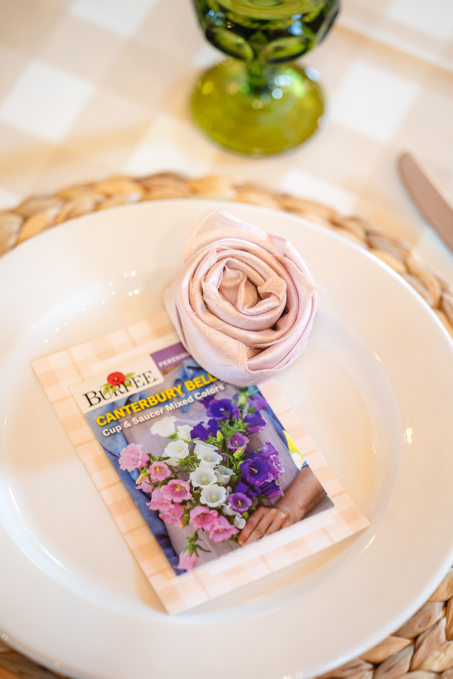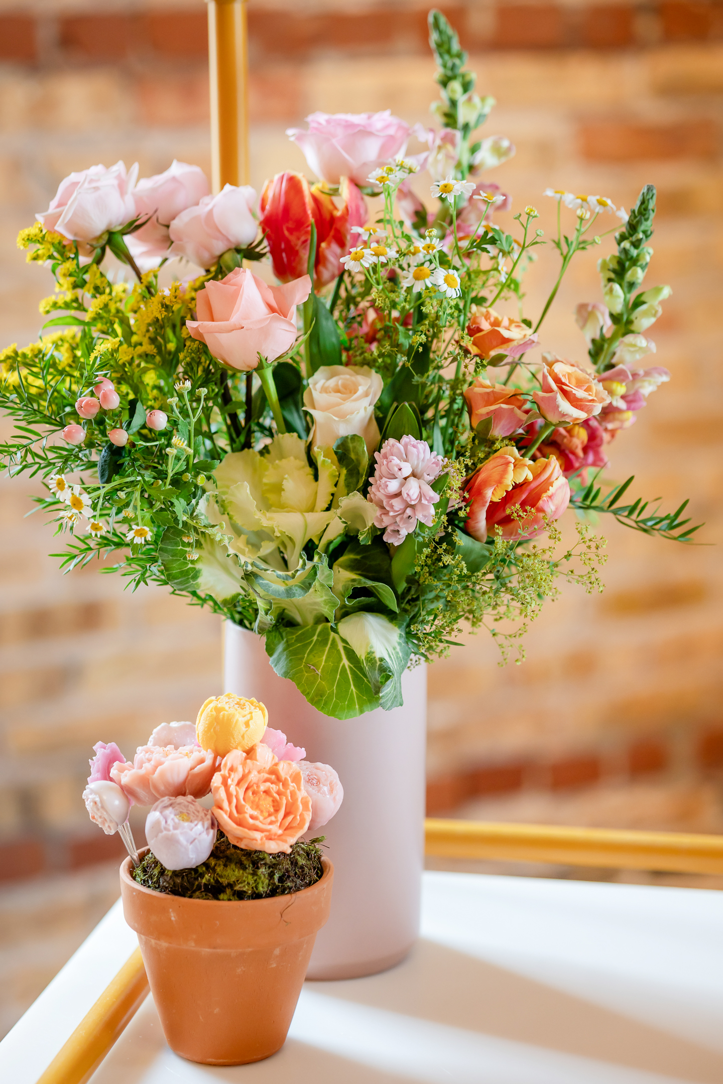 After a gift opening in the cozy lounge area, the backdrop transformed into the perfect space for selfies and group photos between visits to the flower bar. Favors included seed packets, fresh jams, an adorable tote bag, and bud vases guests could trim, fill, and arrange themselves–or with a little help from the experts.