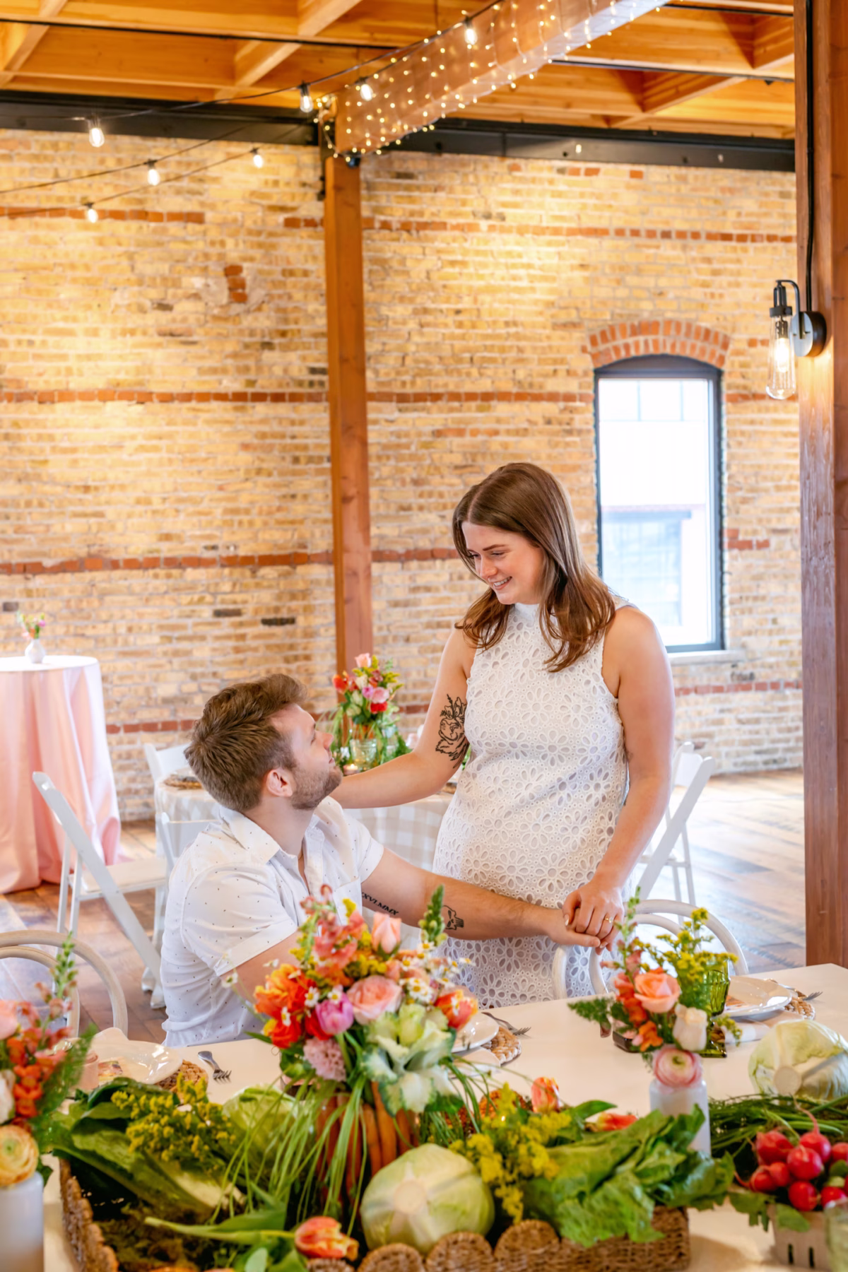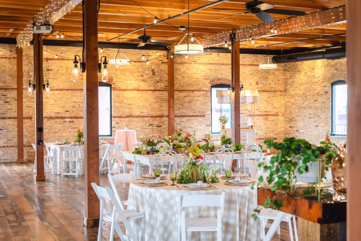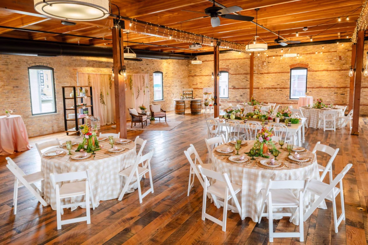 Martinson Hall at Buck & Honeys is an accessible, upstairs room in their historic Mt. Horeb location. The space boasts wooden floors, wooden beams, exposed brick walls, and plenty of windows, making it the perfect mix of natural and industrial for a downtown farmer's market celebration.