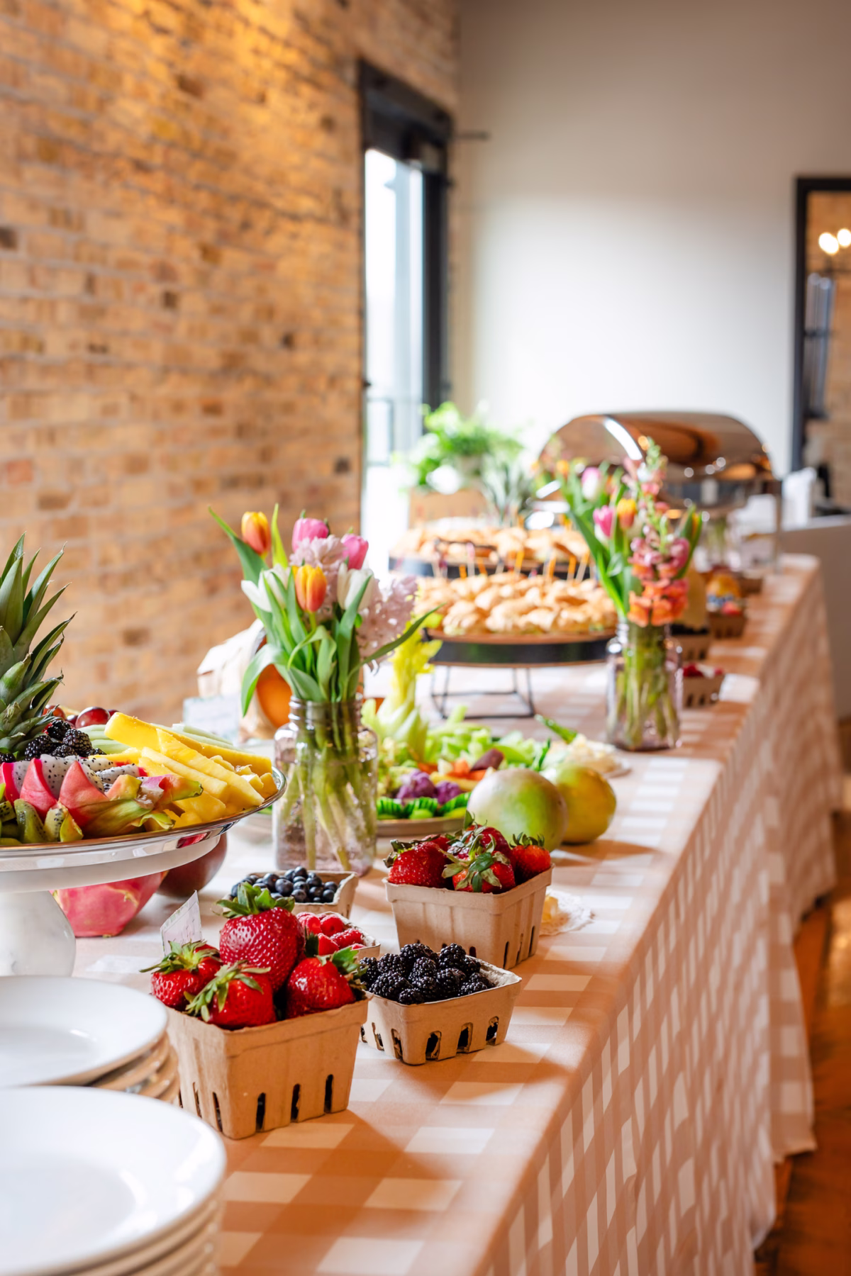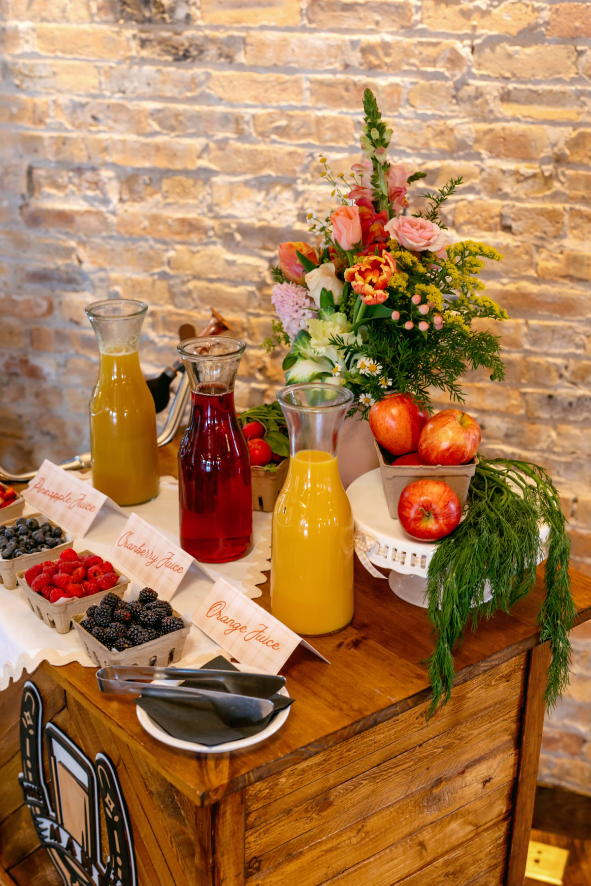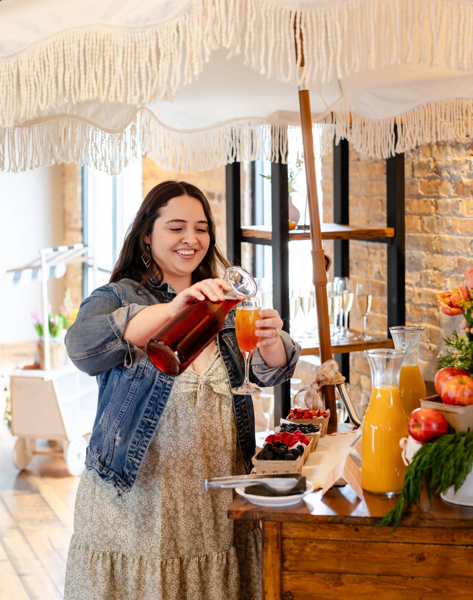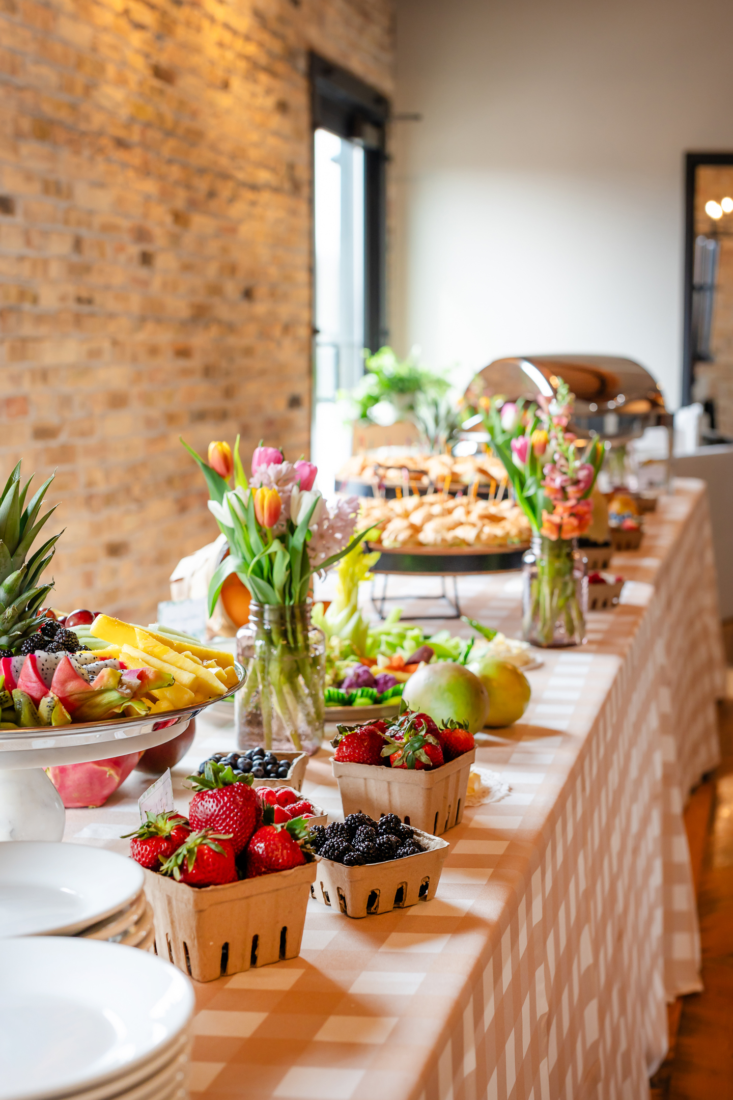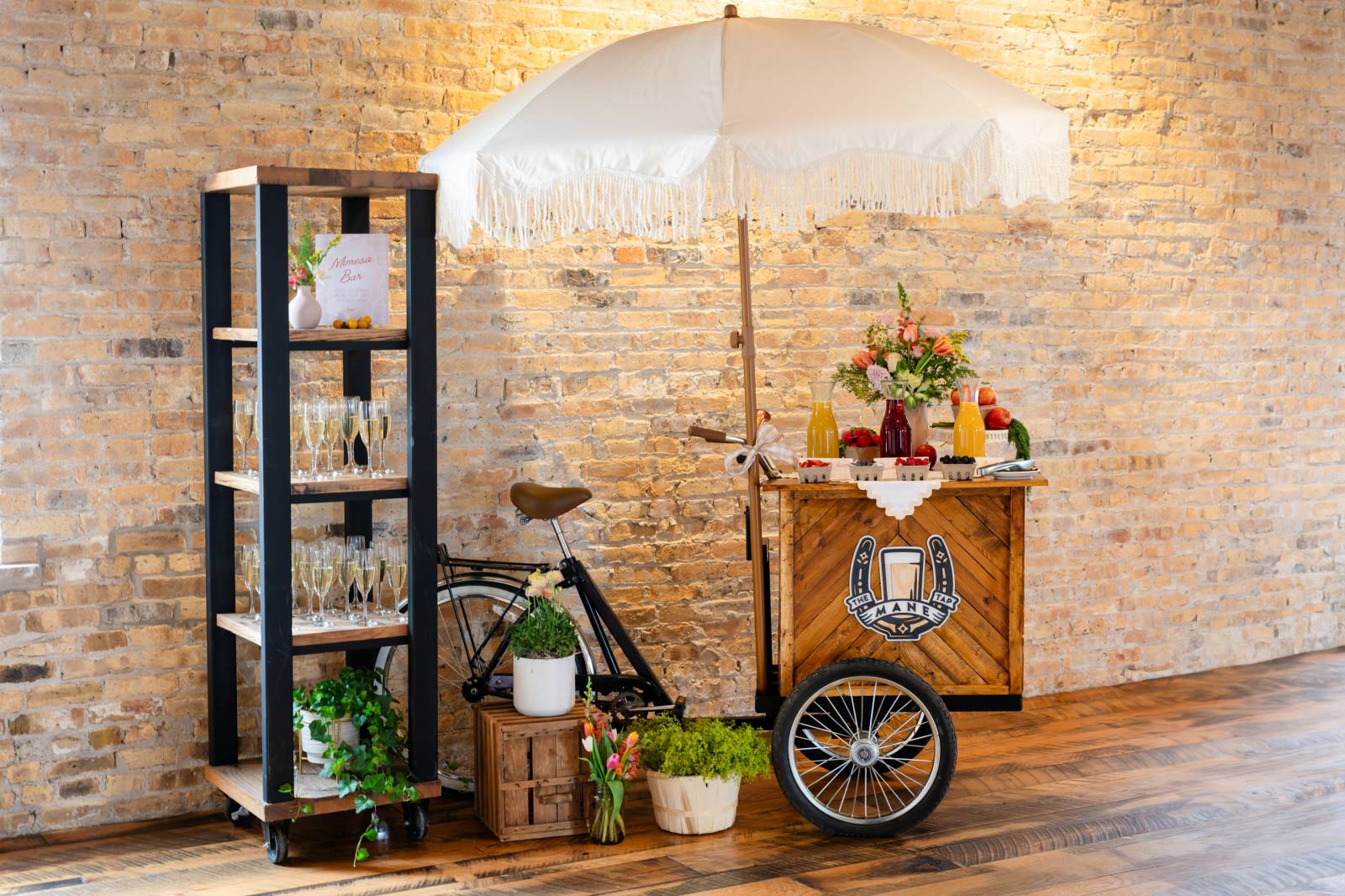 Mimosas are a brunch staple, and the Mane Tap brought their charming, umbrellaed bike cart for the occasion. Buck & Honey's Catering served partially full champagne glasses, which allowed space for guests to add fruit juices and fresh fruit to top off the bubbly beverage. For those choosing an alcohol-free option, there was plenty of juice and fruit for mocktails as well.