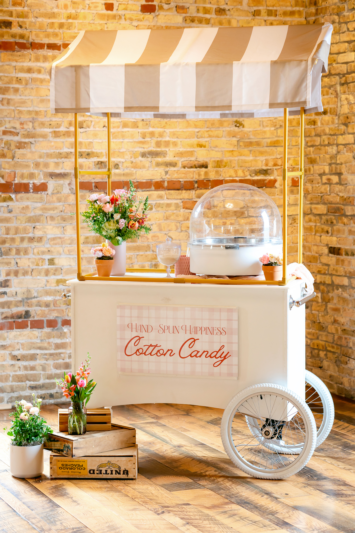 Lily's Magical Treats styled her signature cotton candy cart with matching signage and decor for the occasion. She served flavored cotton candy to guests, and also sculpted lollipops shaped like carrots and strawberries for the dessert table.