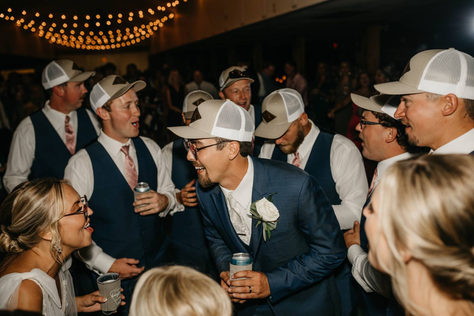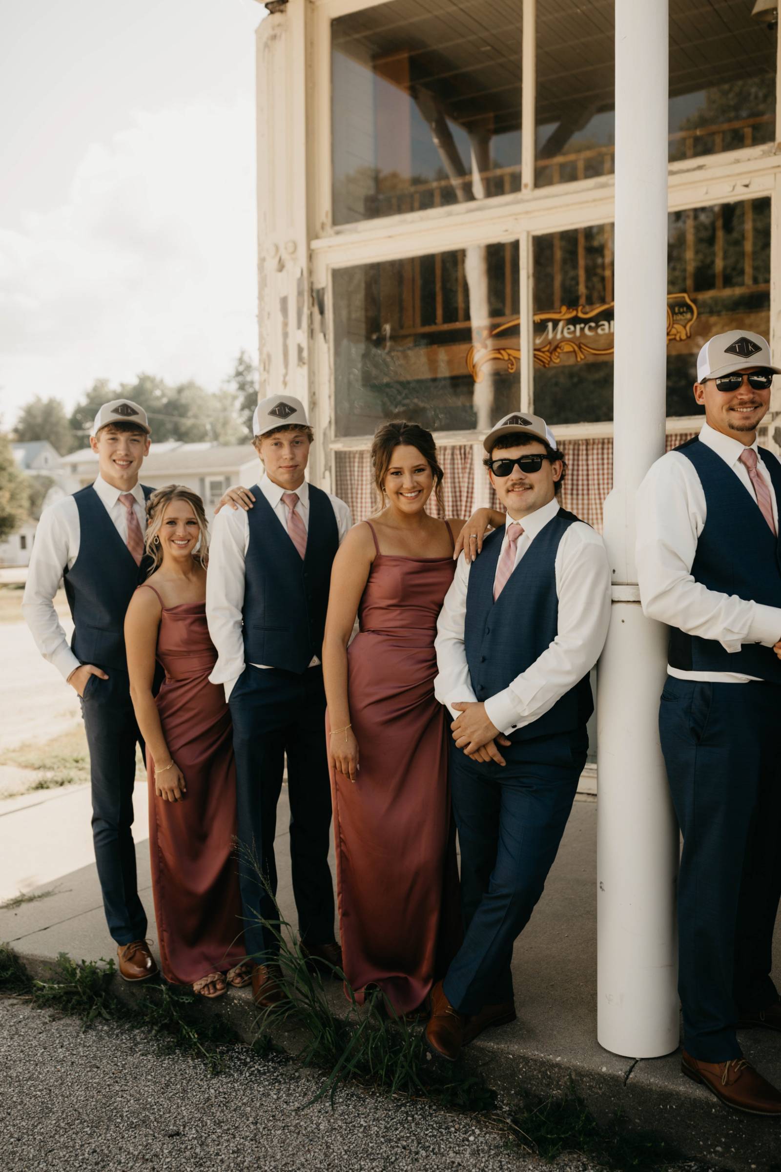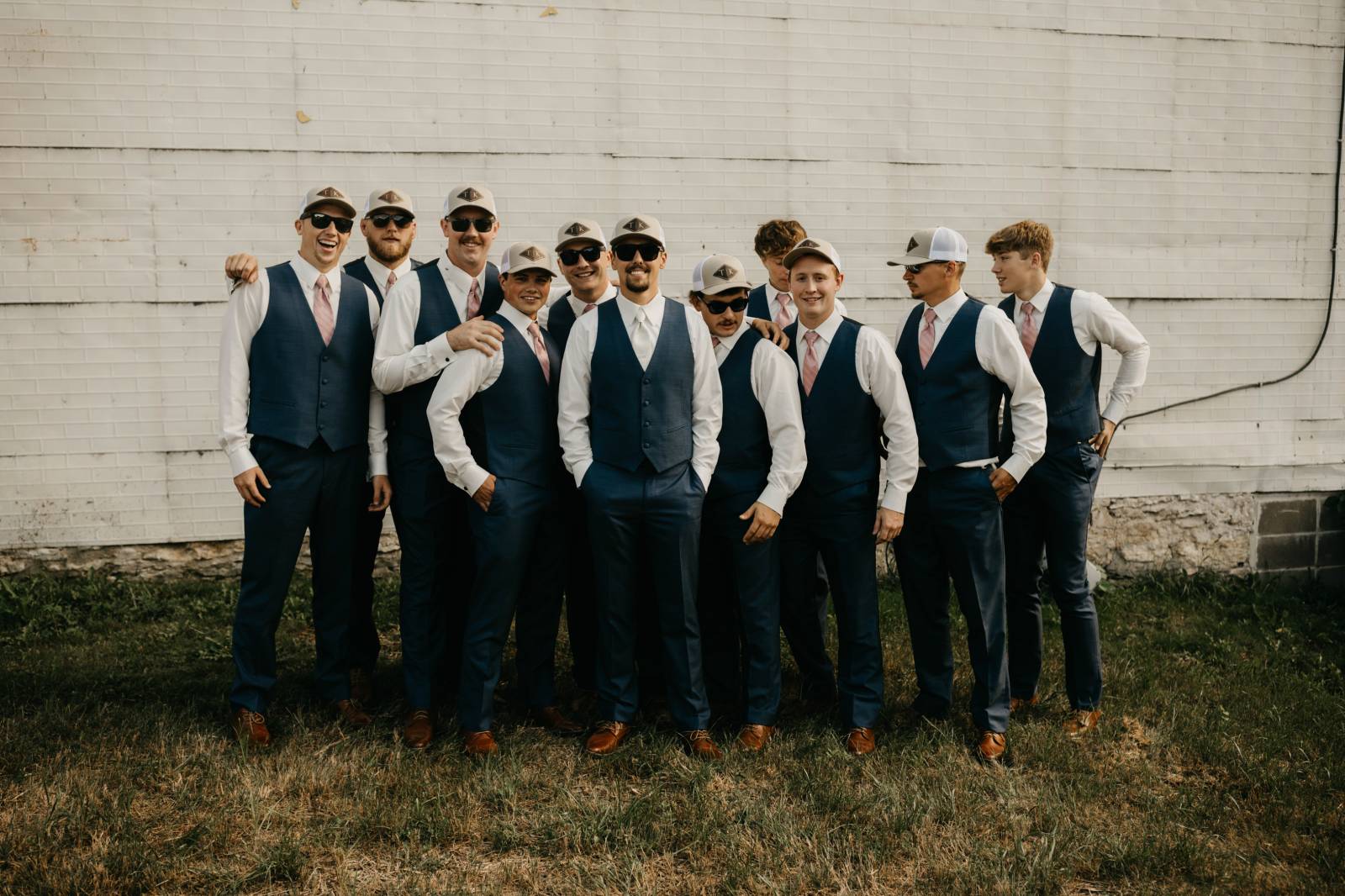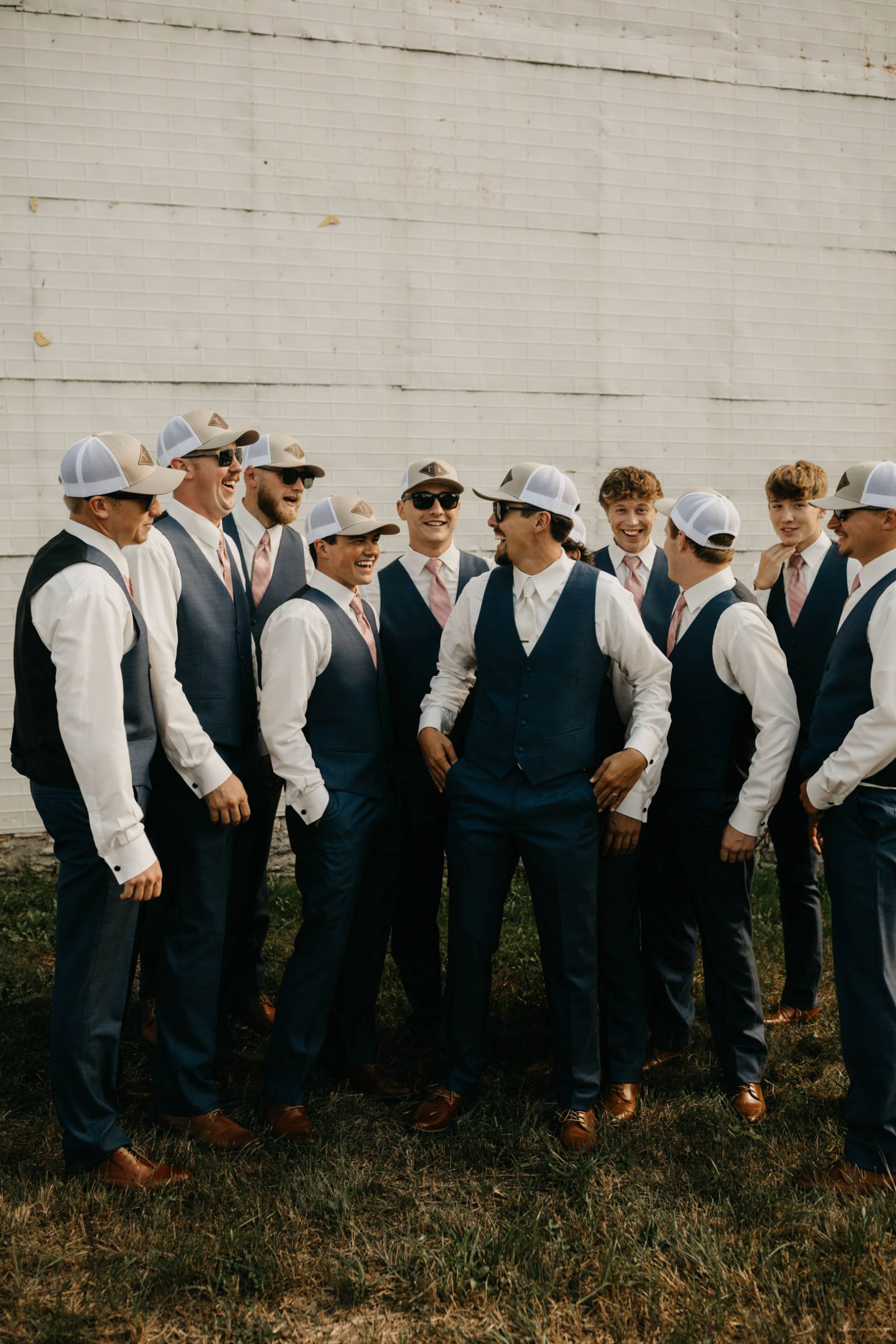 Later in the day, for more casual photos, the groom and groomsmen sported matching custom hats with 'K & T' initialed on the front.