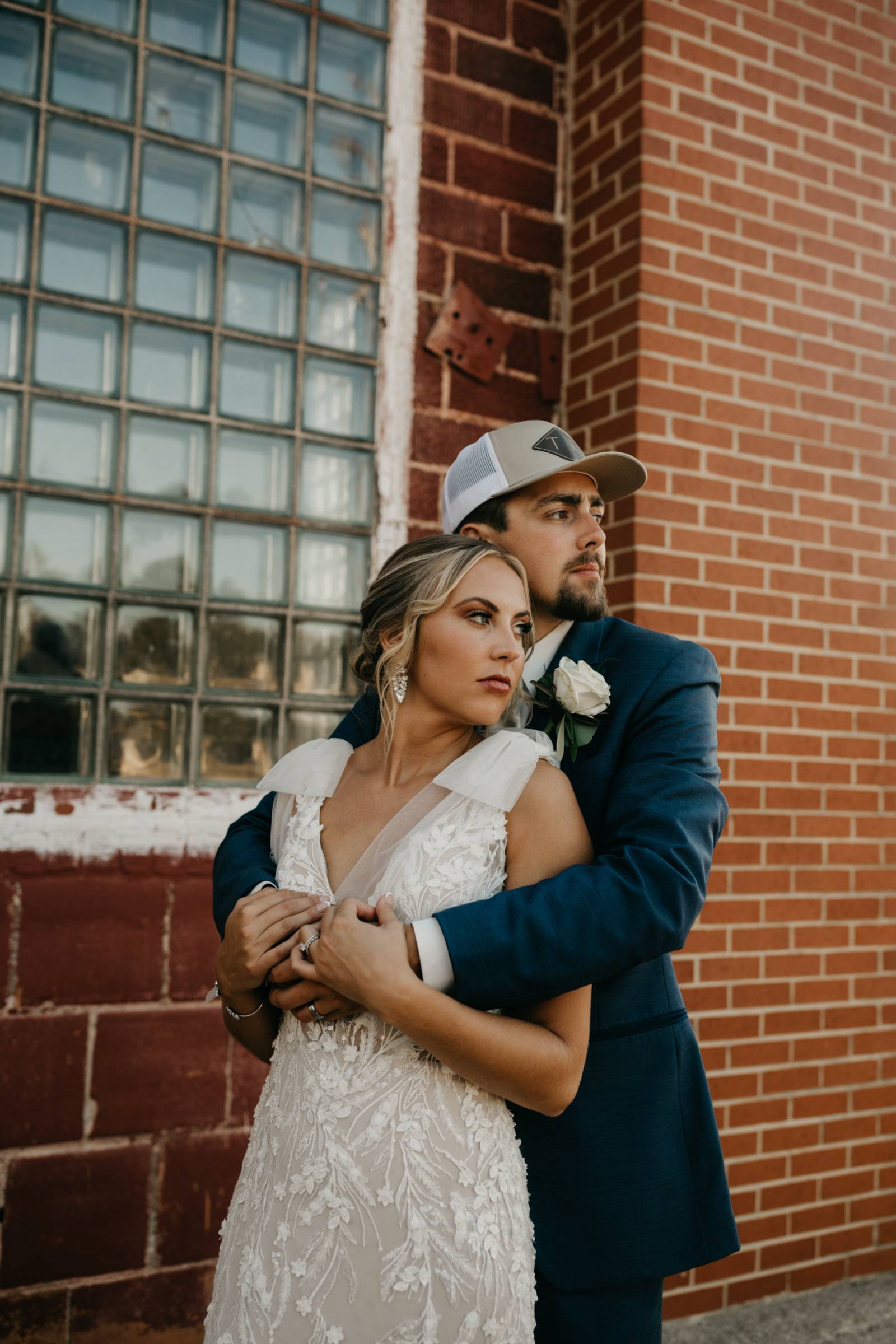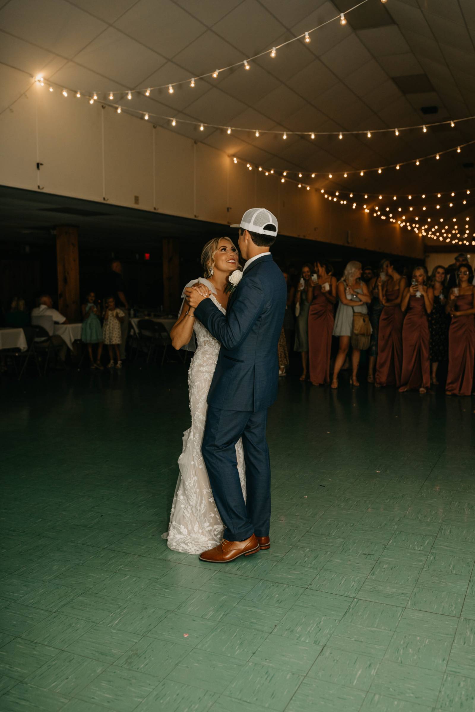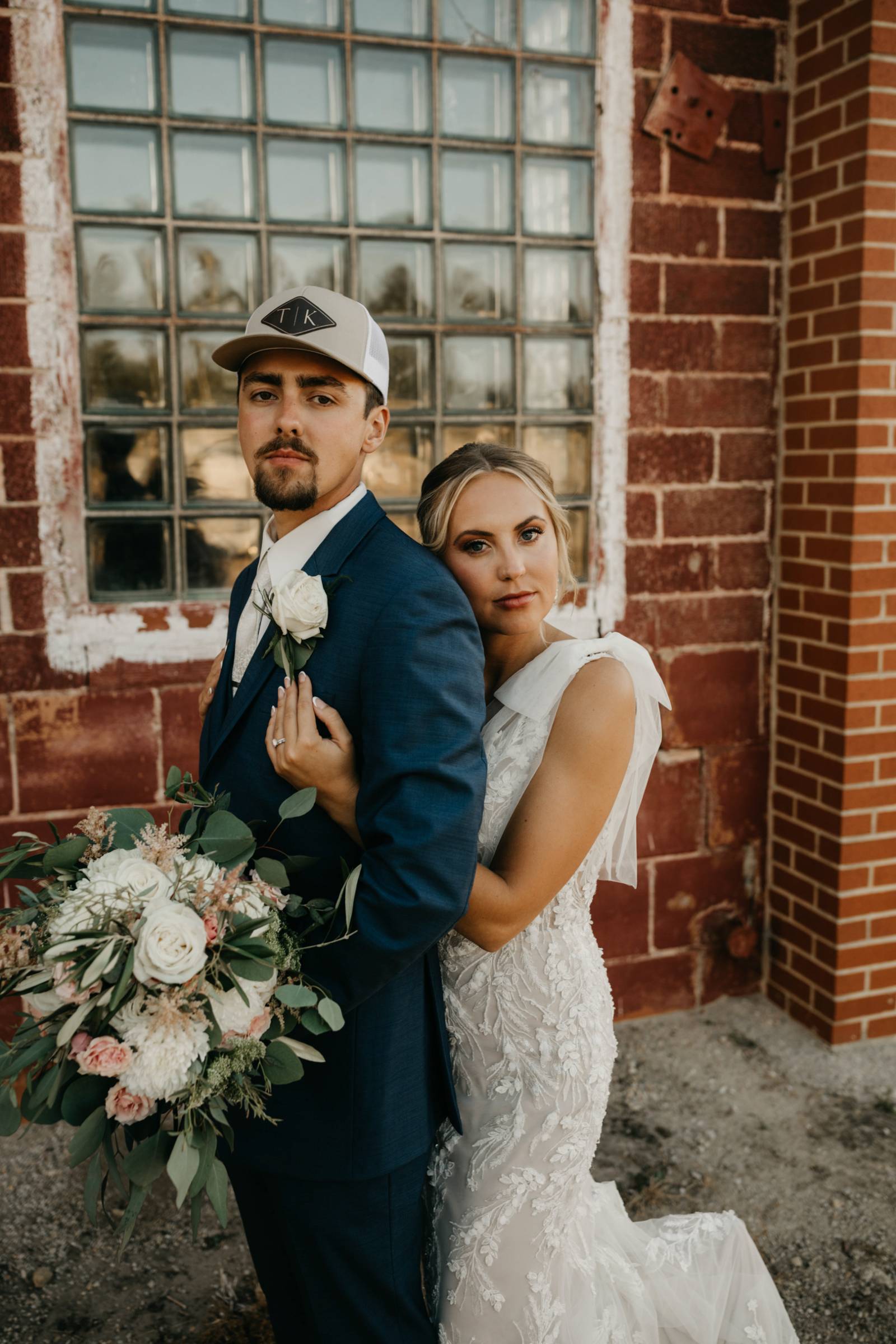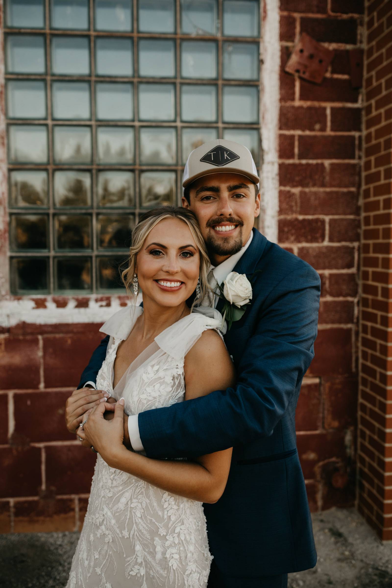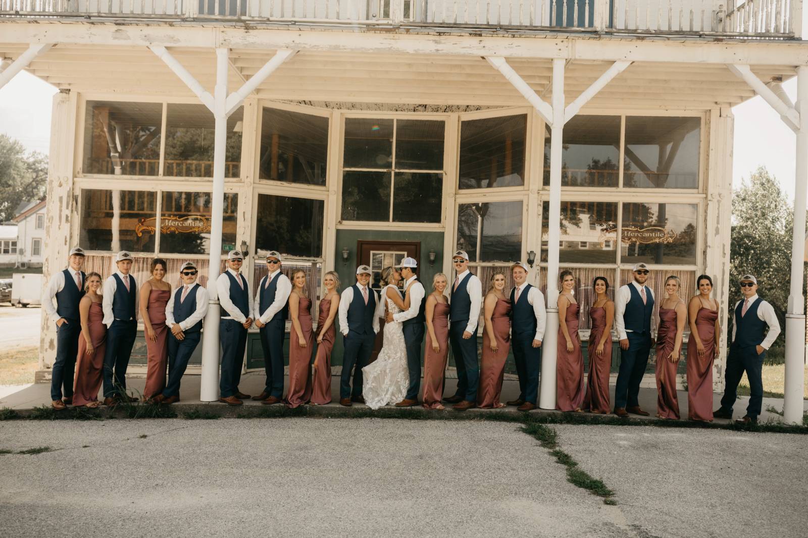 Later in the day, for more casual photos, the groom and groomsmen sported matching custom hats with 'K & T' initialed on the front.