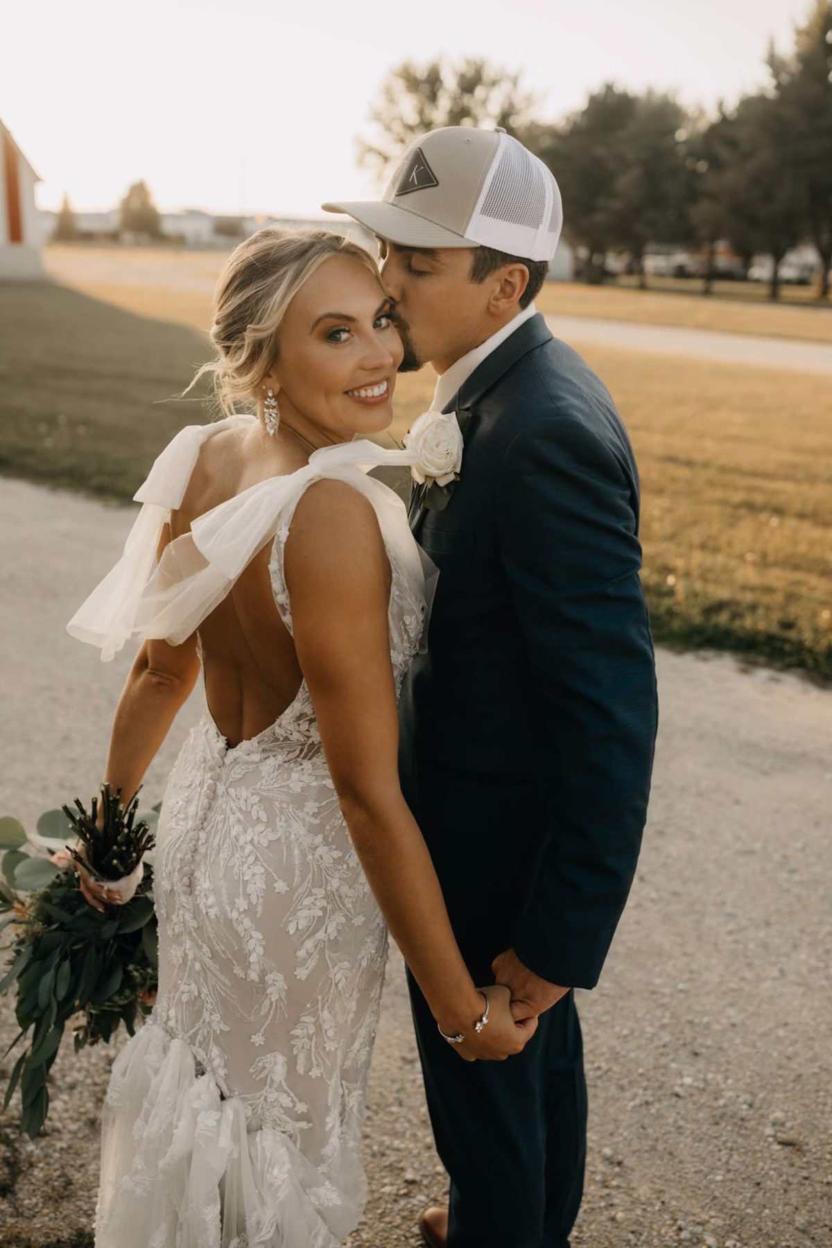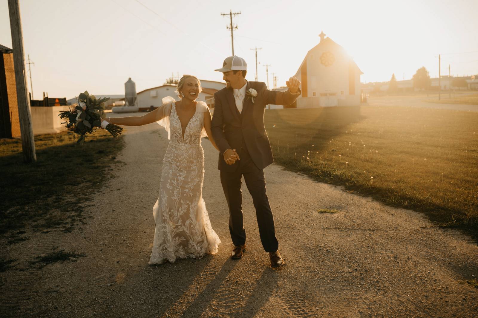 Before the final dances, Kayla & Tye snuck away for sunset photos with photographer Alder & Root. Reflecting on the day, Kayla wrote, "Our biggest priority was photography and videography to capture our day. We wanted to work with someone who made us feel comfortable and matched our style. Emily (Alder & Root) did just that."