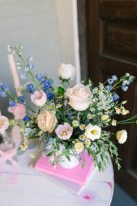 Lush florals from Bloom and Knot graced every corner of the celebration, filling the venue with soft pinks, blues, whites, and verdant greenery. From the bride’s breathtaking bouquet to the groom’s boutonniere and every artful accent arrangement, each piece was beautifully cohesive and infused with romance, like a scene straight out of a storybook.