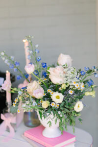 Lush florals from Bloom and Knot graced every corner of the celebration, filling the venue with soft pinks, blues, whites, and verdant greenery. From the bride's breathtaking bouquet to the groom's boutonniere and every artful accent arrangement, each piece was beautifully cohesive and infused with romance, like a scene straight out of a storybook.