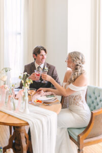 Is there anything more romantic than a picnic on the lawn, curled up with your love and a good book? The couple embraced the serene beauty of the Cargill-Pettibone Mansion grounds, enjoying drinks and light bites on a cozy picnic blanket. It was the perfect moment of quiet intimacy, offering a peaceful pause together amidst the celebration.