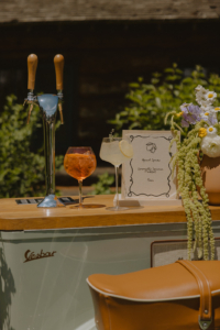 A custom bar menu is the perfect way to bring refreshing flair to your summer wedding; think fruity, light, and refreshing. Some of our favorite options include Aperol Spritz, sparkling lemonades (with or without a kick), cucumber mint coolers, or strawberry basil vodka sodas. Add sparkling glassware and a citrus garnish or edible flower, and you've got a signature drink moment your guests will rave about all night.
