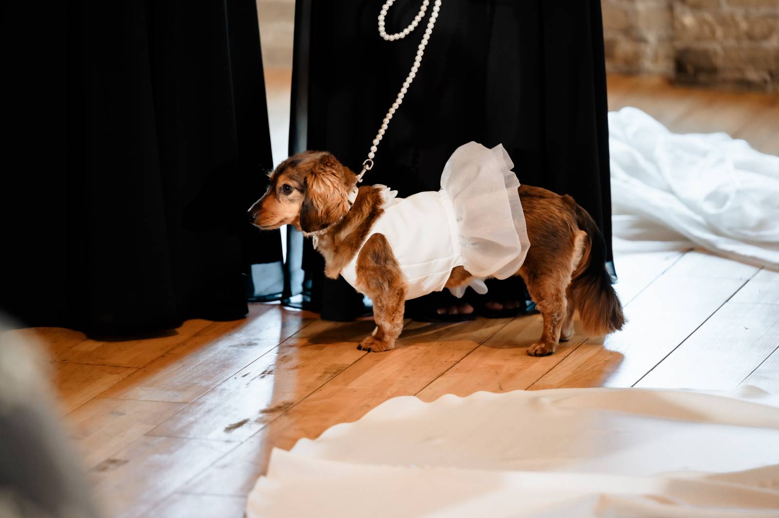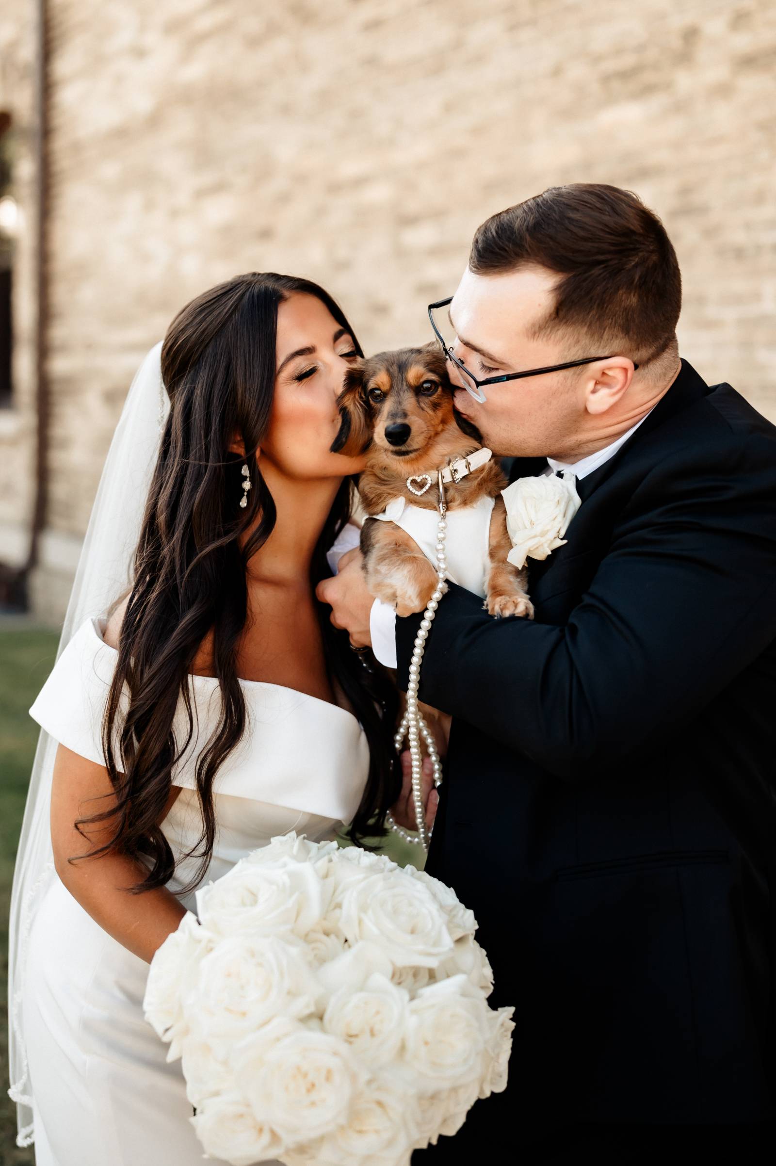 There are a lot of moving parts during a wedding day, so we recommend hiring a pet attendant or professional service to help with transitions, care, and even outfit changes! Also, make sure to check pet policies with your venue ahead of time, and remember shade, water, and quiet breaks throughout the day–for yourself and your pet!
