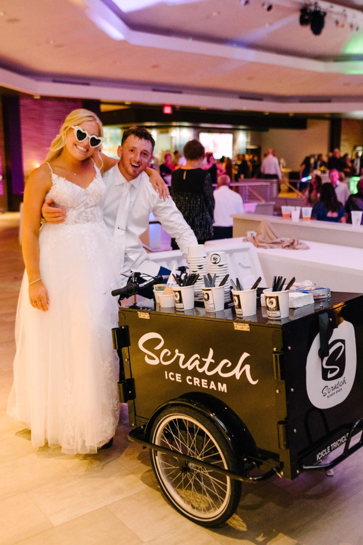 Novelty sunglasses are not going away any time soon because they are practical and cute! Whether heart-shaped, retro, or custom with your names and date, these fun accessories bring personality to your wedding photos. Paired with an ice cream cart or sundae bar, guests will stay cool and comfortable, even on the hottest day. Indoor celebration with air-conditioning? Trust us, they'll still be lining up.
