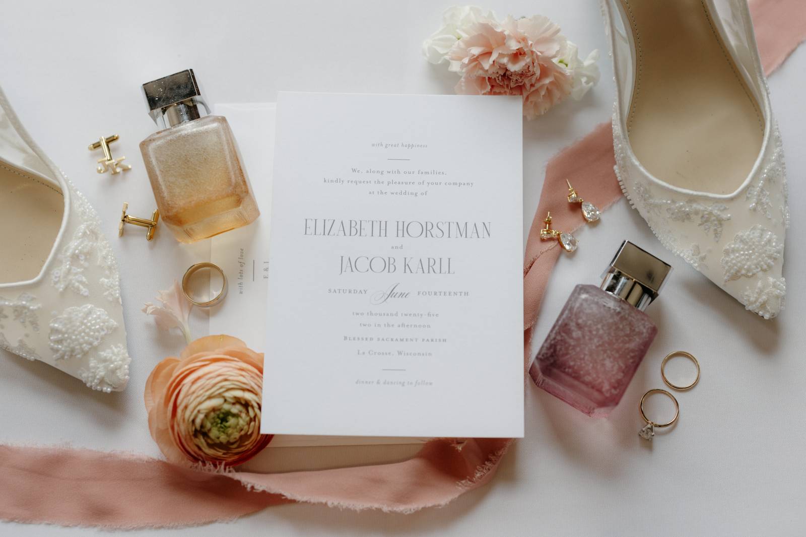 Elizabeth and Jake’s elegant La Crosse wedding at Cappella Weddings & Events was filled with timeless details, romantic florals, and heartfelt moments. From a classic church ceremony to a joyful downtown celebration, their day reflected love, style, and meaningful personal touches.