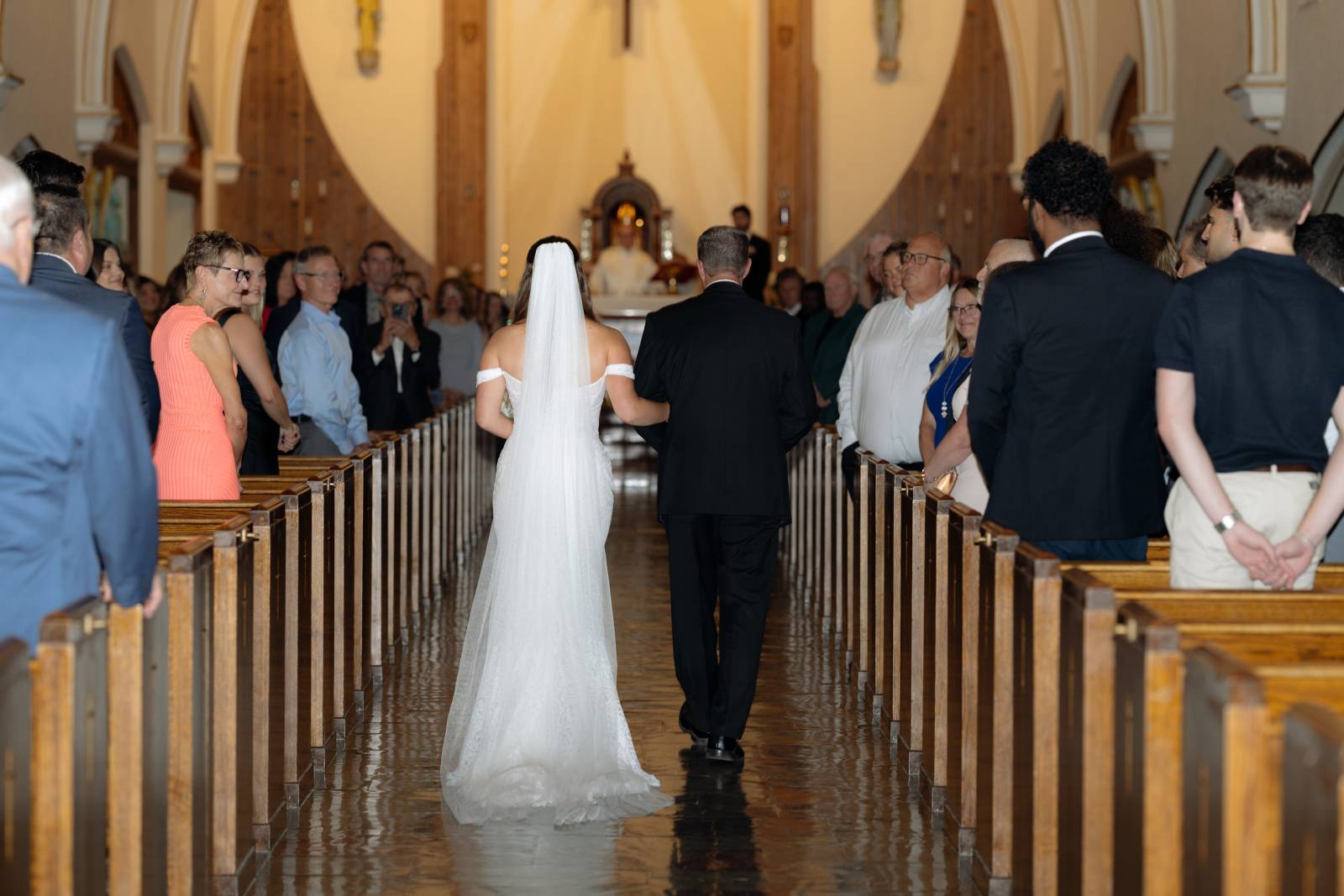 The couple wed at Blessed Sacrament Church in La Crosse. Jake’s walk down the aisle was the first without crutches after an ankle injury just weeks before, an unexpected hiccup Elizabeth & Jake chose to see the best in. Though he wore a boot for the occasion, it did not take away from the beauty and meaning of their devotion to one another. If anything, the moment felt even more memorable and momentous.