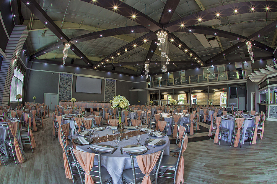 Center Court accommodates up to 400 guests with an elegant design, gorgeous crystal chandeliers, indoor and outdoor bars, riverside altar and fire ring, and a luxury bridal suite and groom’s room.