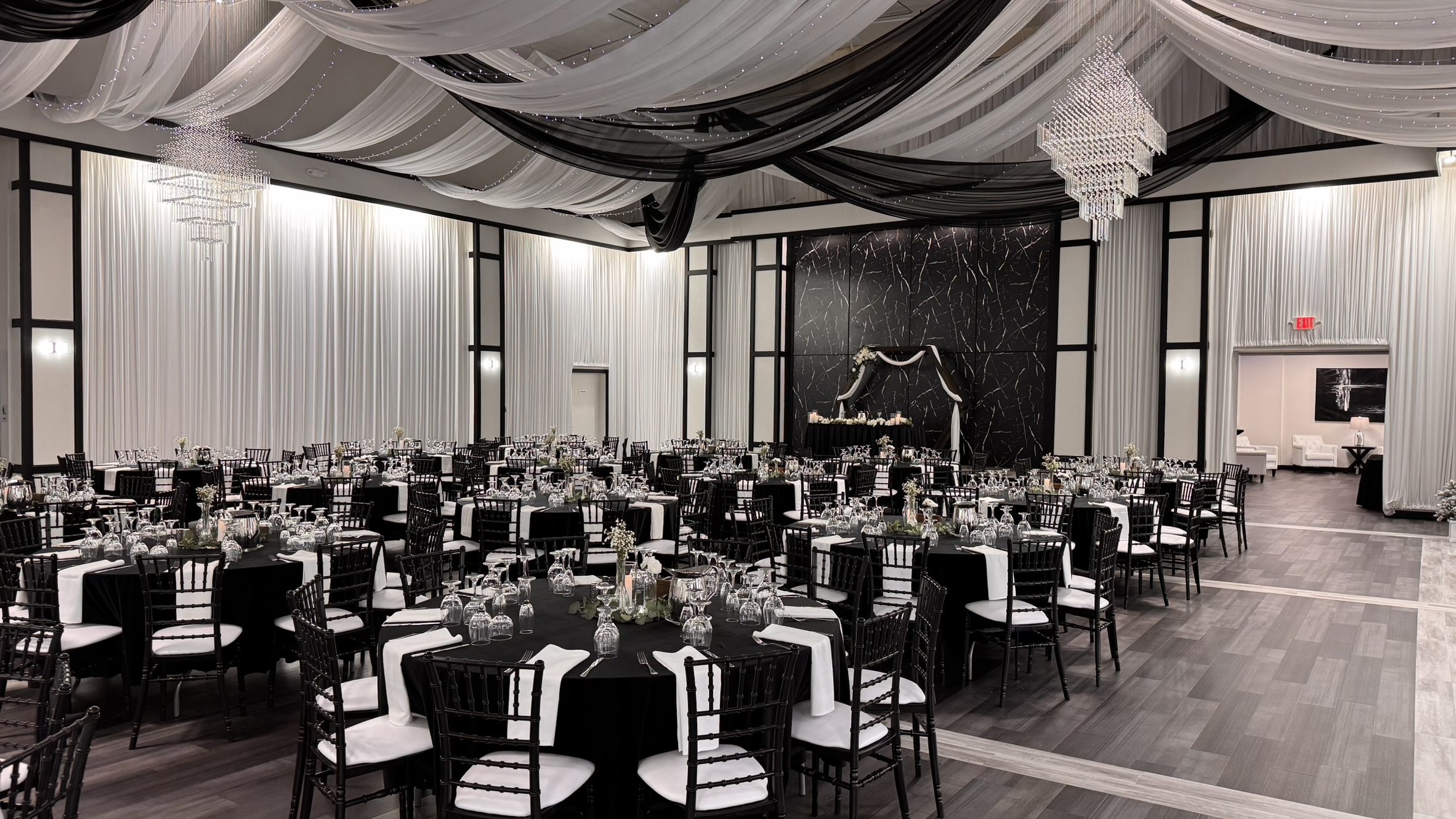 Court Yard accommodates up to 325 guests with a classy black and white design, two full-service bars, outdoor courtyard, private ceremony altar, and huge bridal and groom suites delivers the picture-perfect venue for your wedding.