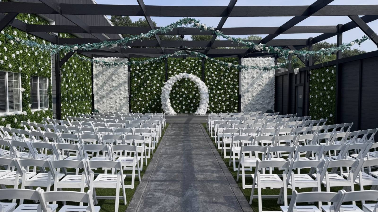 Court Yard accommodates up to 325 guests with a classy black and white design, two full-service bars, outdoor courtyard, private ceremony altar, and huge bridal and groom suites delivers the picture-perfect venue for your wedding.