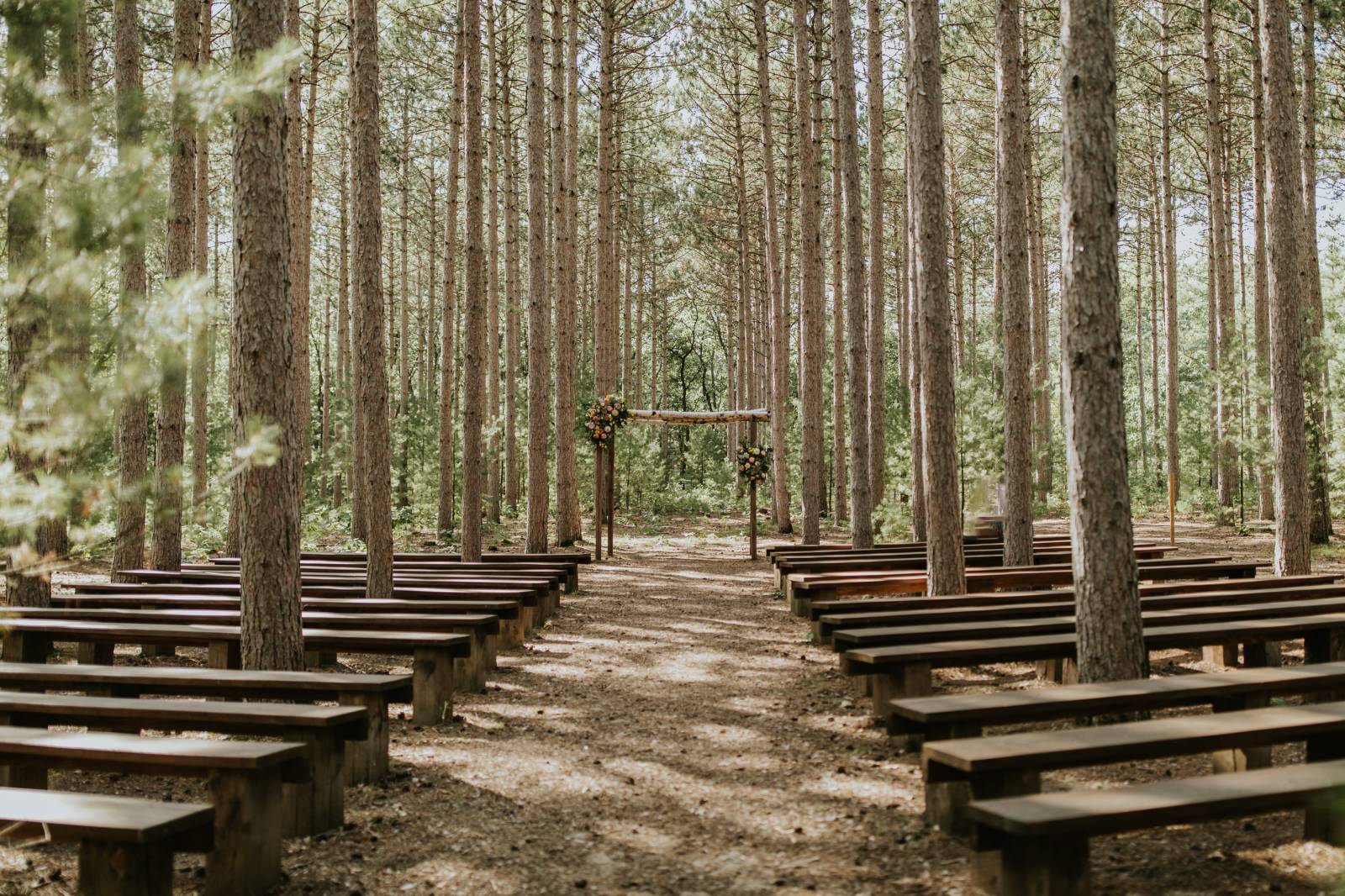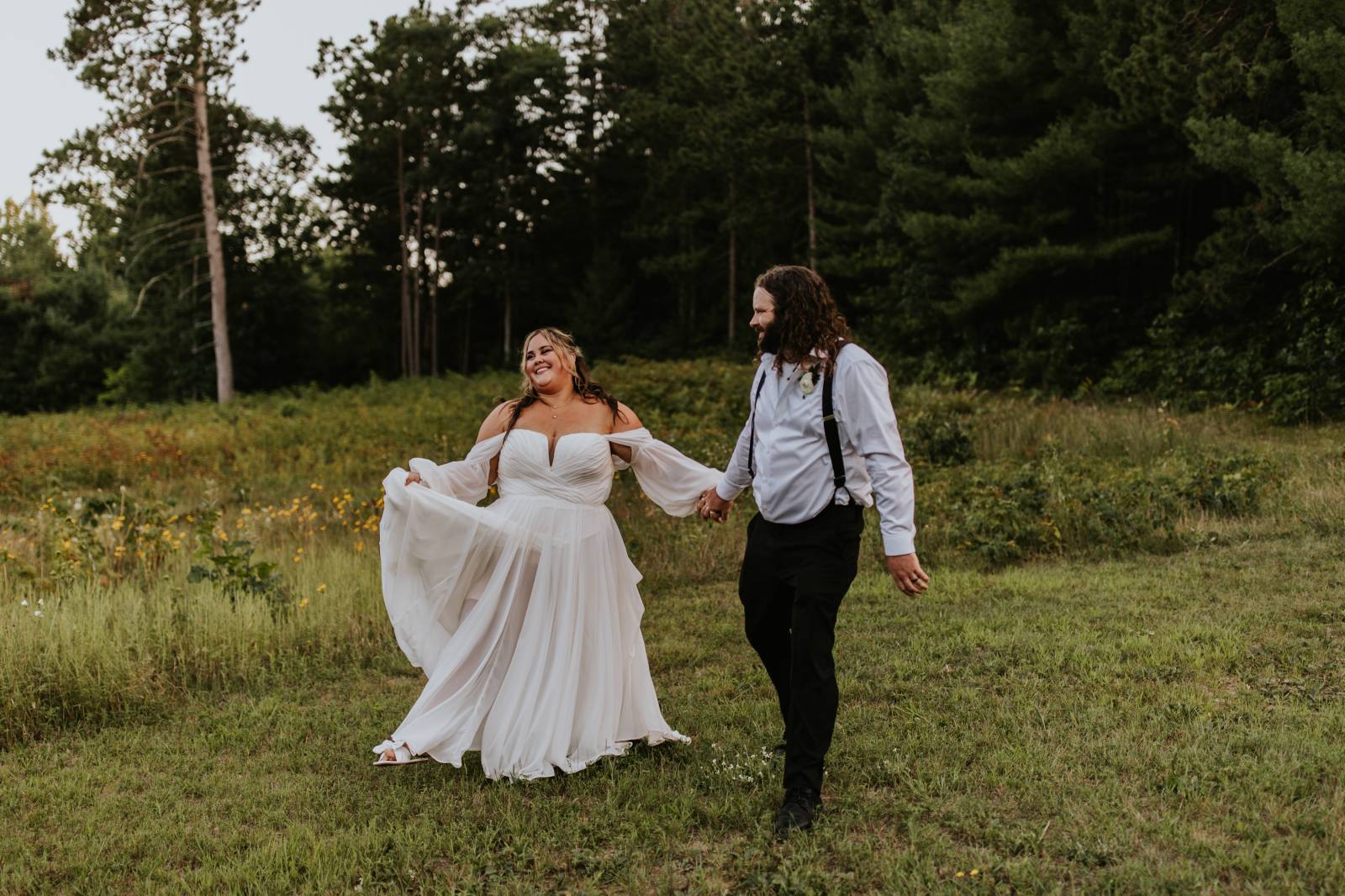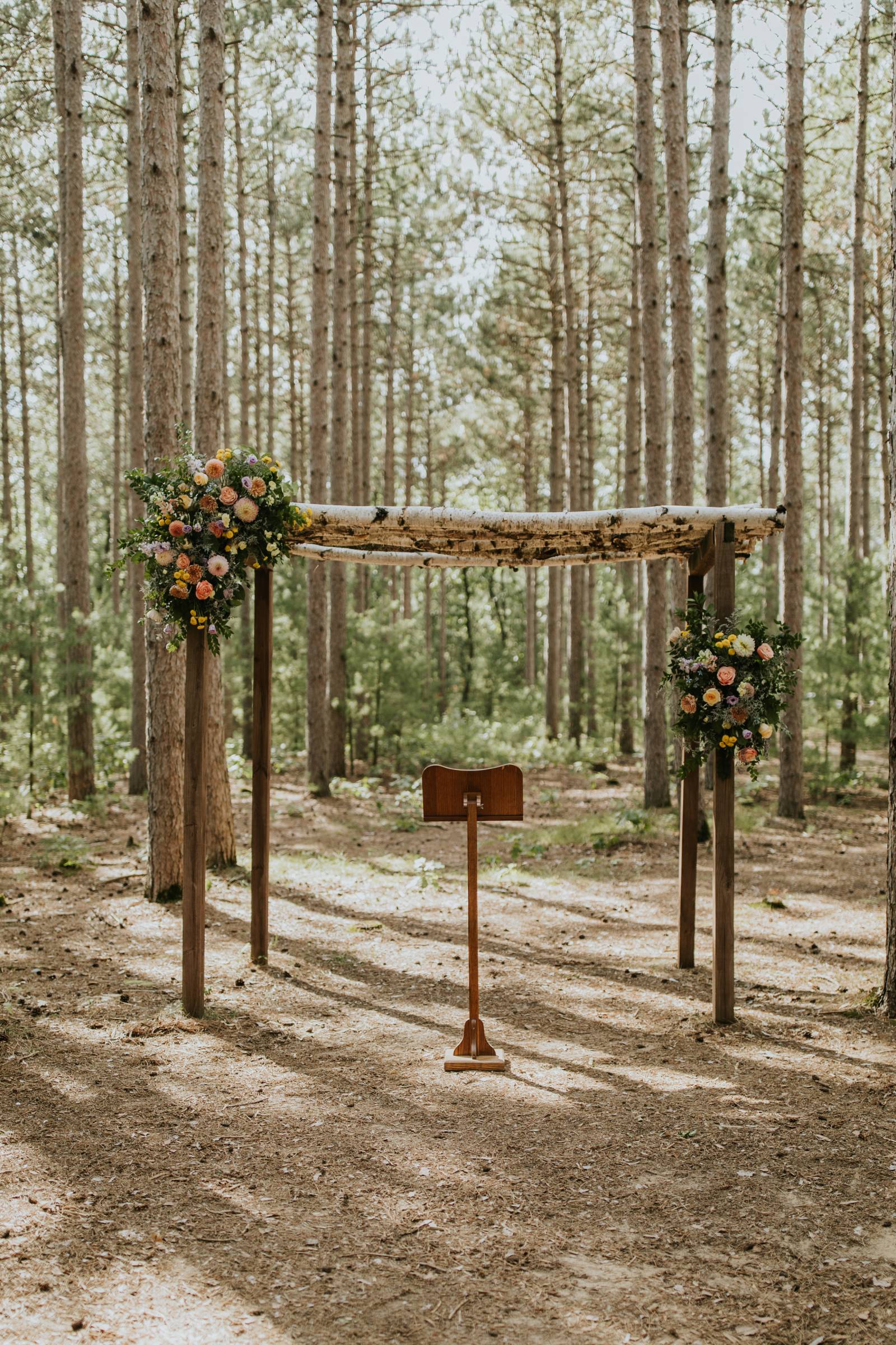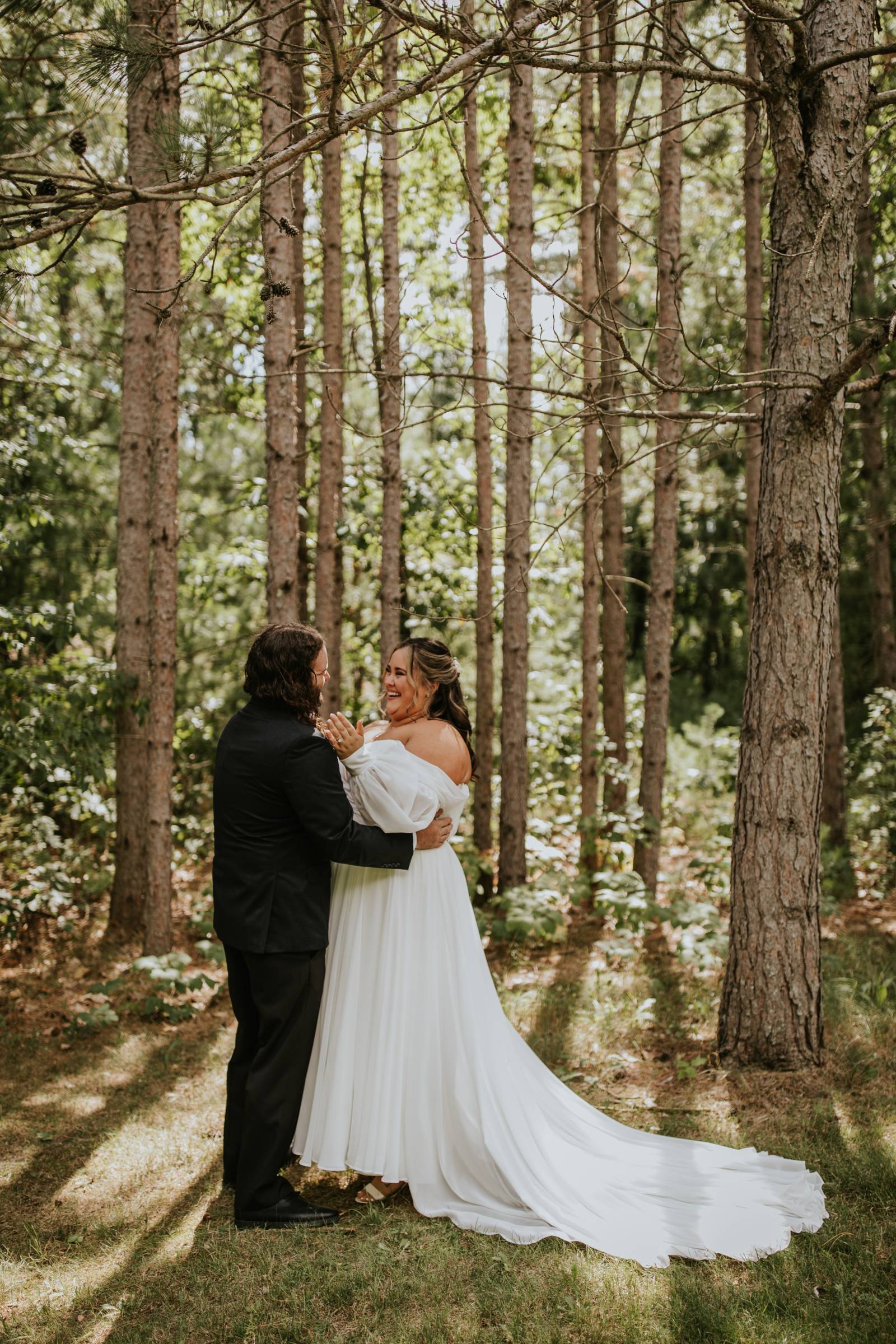 These two celebrated their love on a beautiful August day tucked in the Wisconsin woods at Burlap & Belles’ venue in Black River Falls, surrounded by the romance of the pines, the love of their friends and family, and the whimsy of wildflowers gracing every corner.