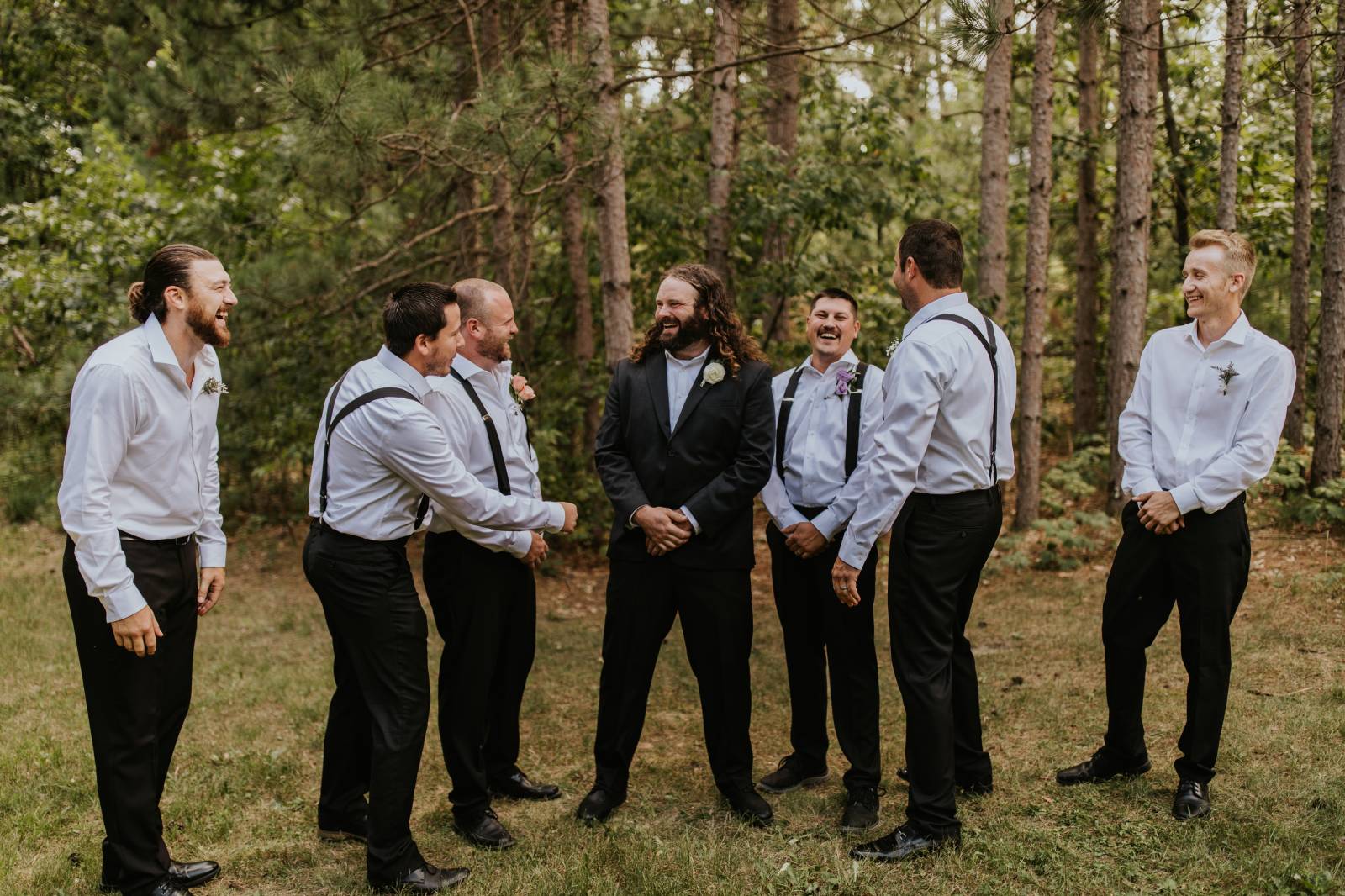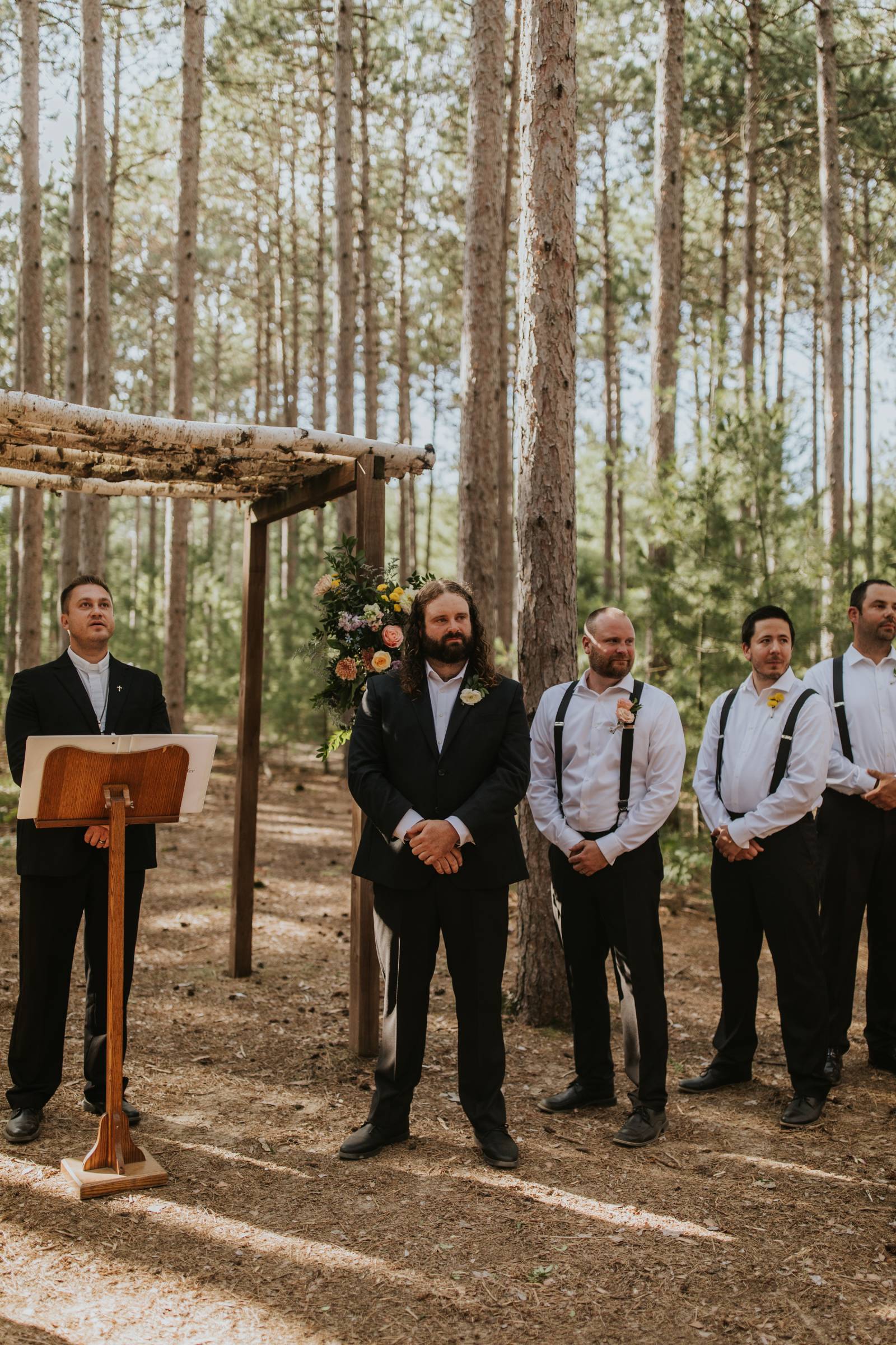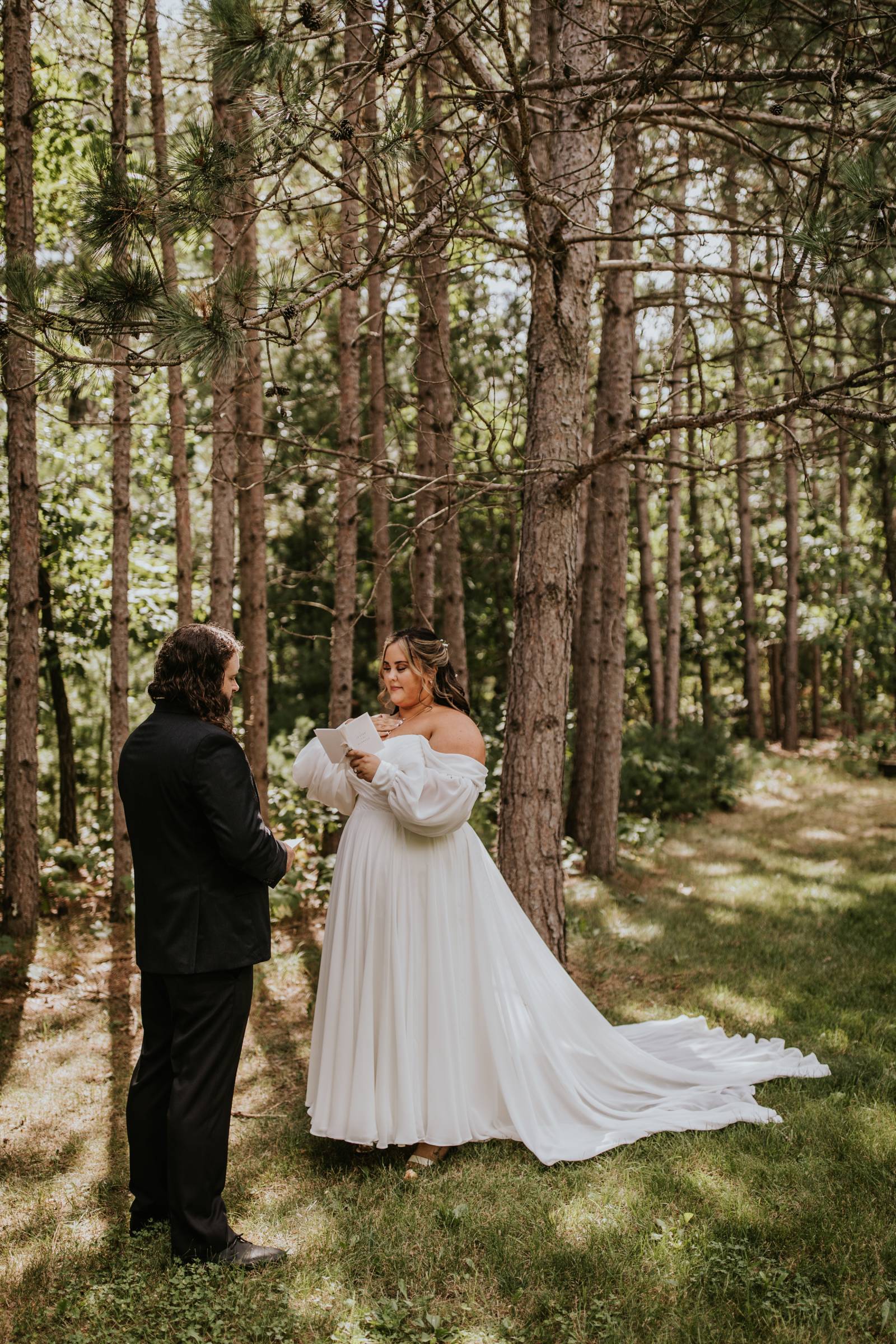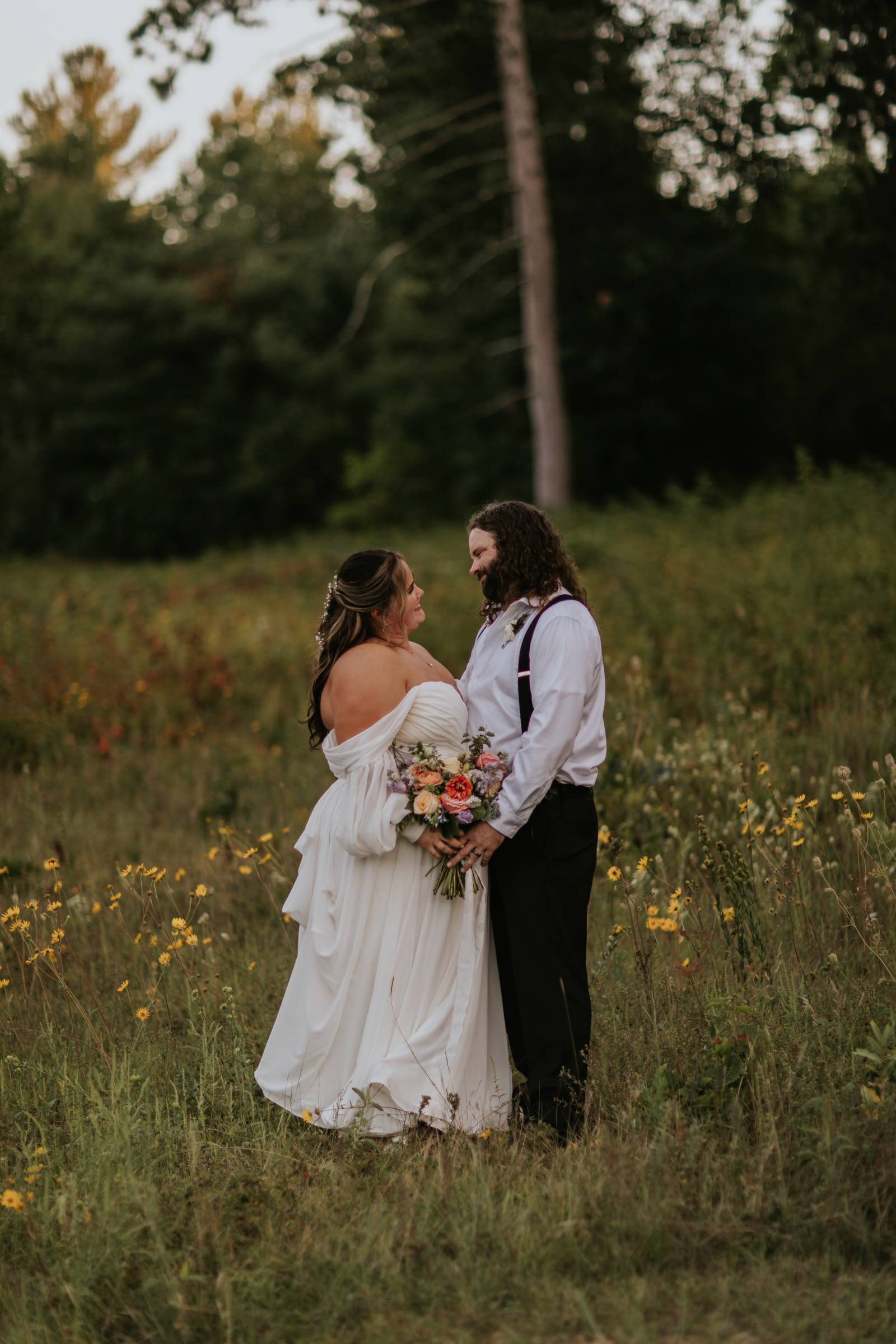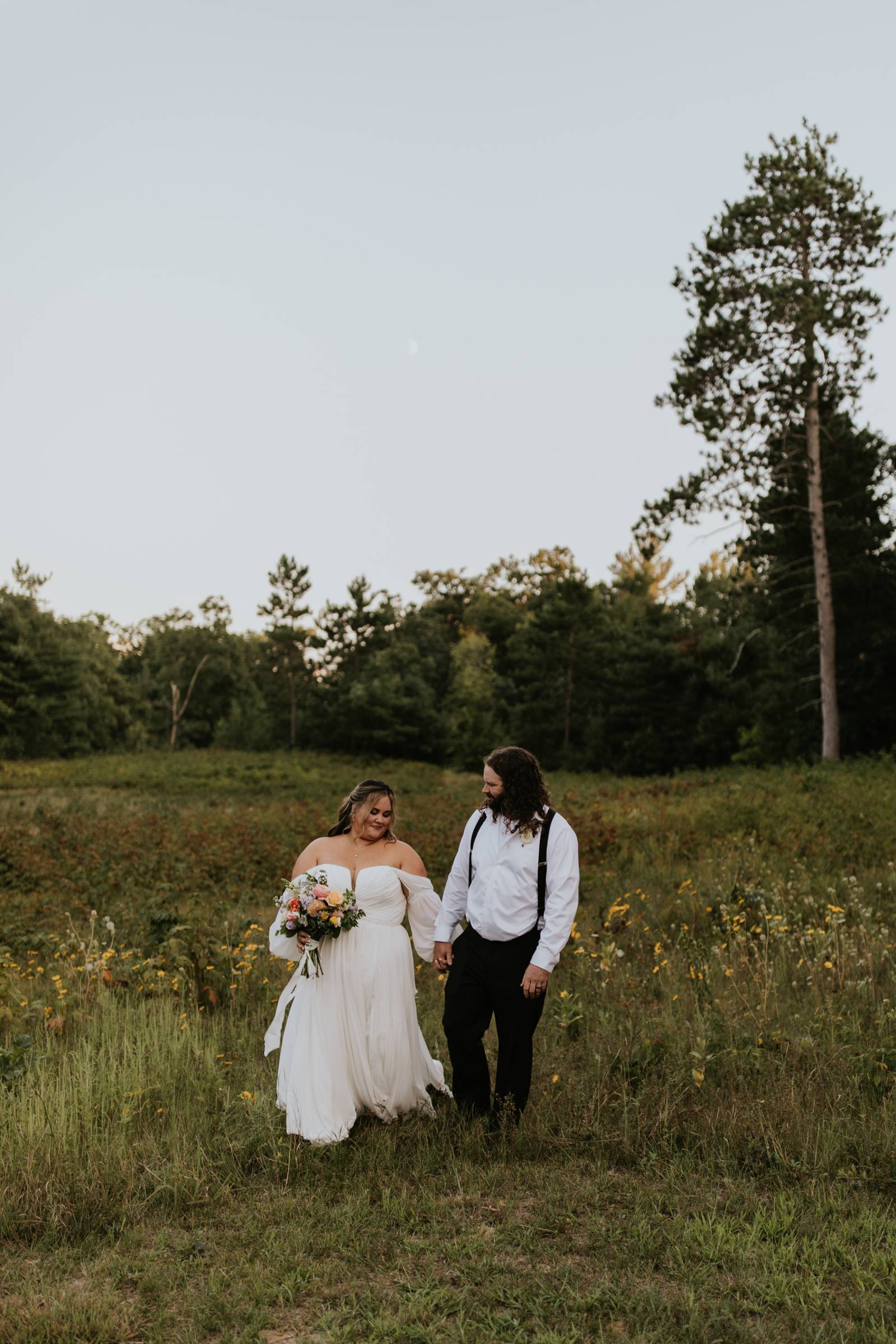 These two celebrated their love on a beautiful August day tucked in the Wisconsin woods at Burlap & Belles’ venue in Black River Falls, surrounded by the romance of the pines, the love of their friends and family, and the whimsy of wildflowers gracing every corner.