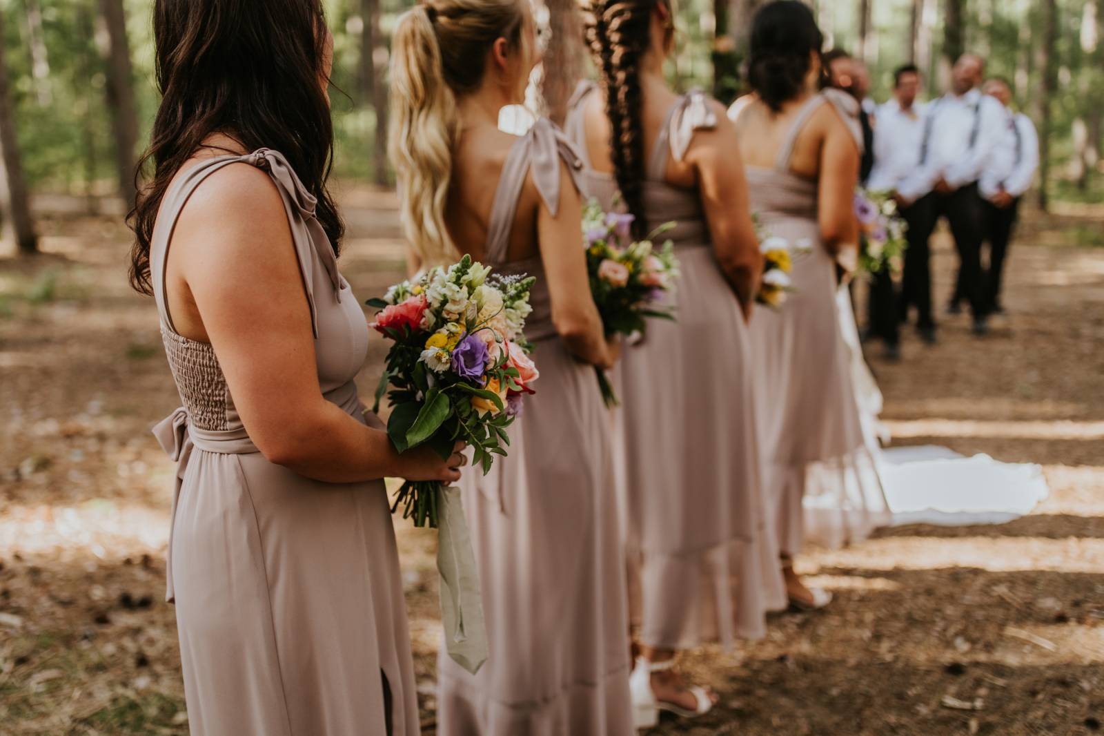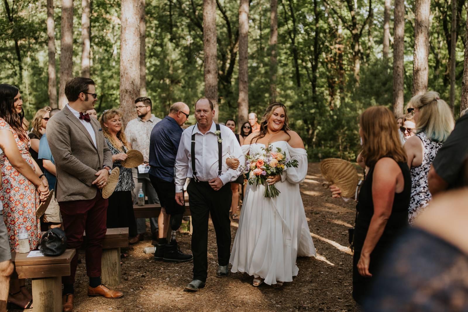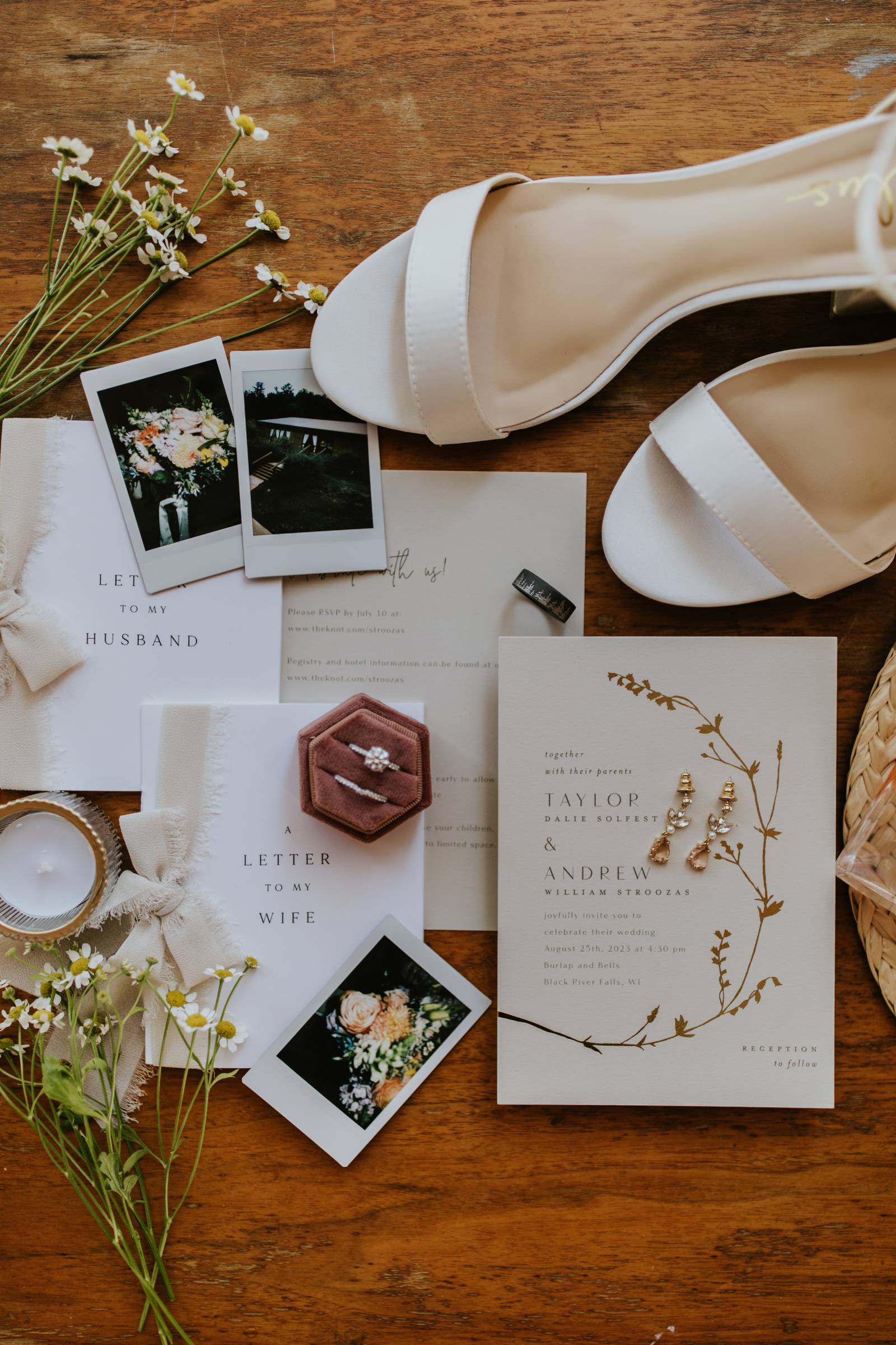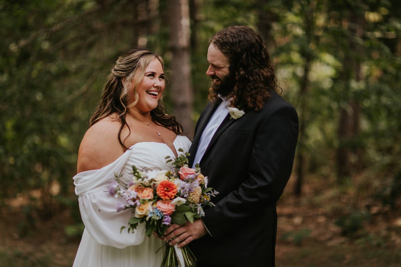 These two celebrated their love on a beautiful August day tucked in the Wisconsin woods at Burlap & Belles’ venue in Black River Falls, surrounded by the romance of the pines, the love of their friends and family, and the whimsy of wildflowers gracing every corner.