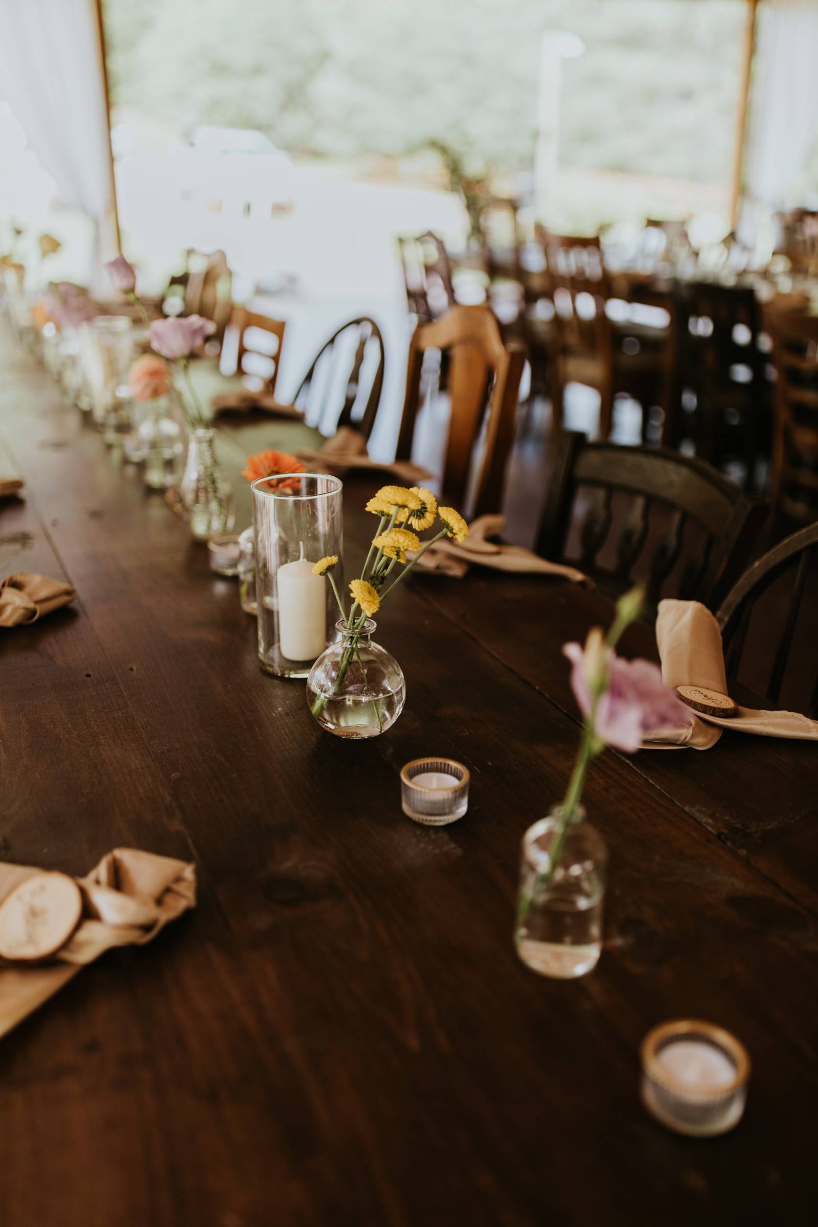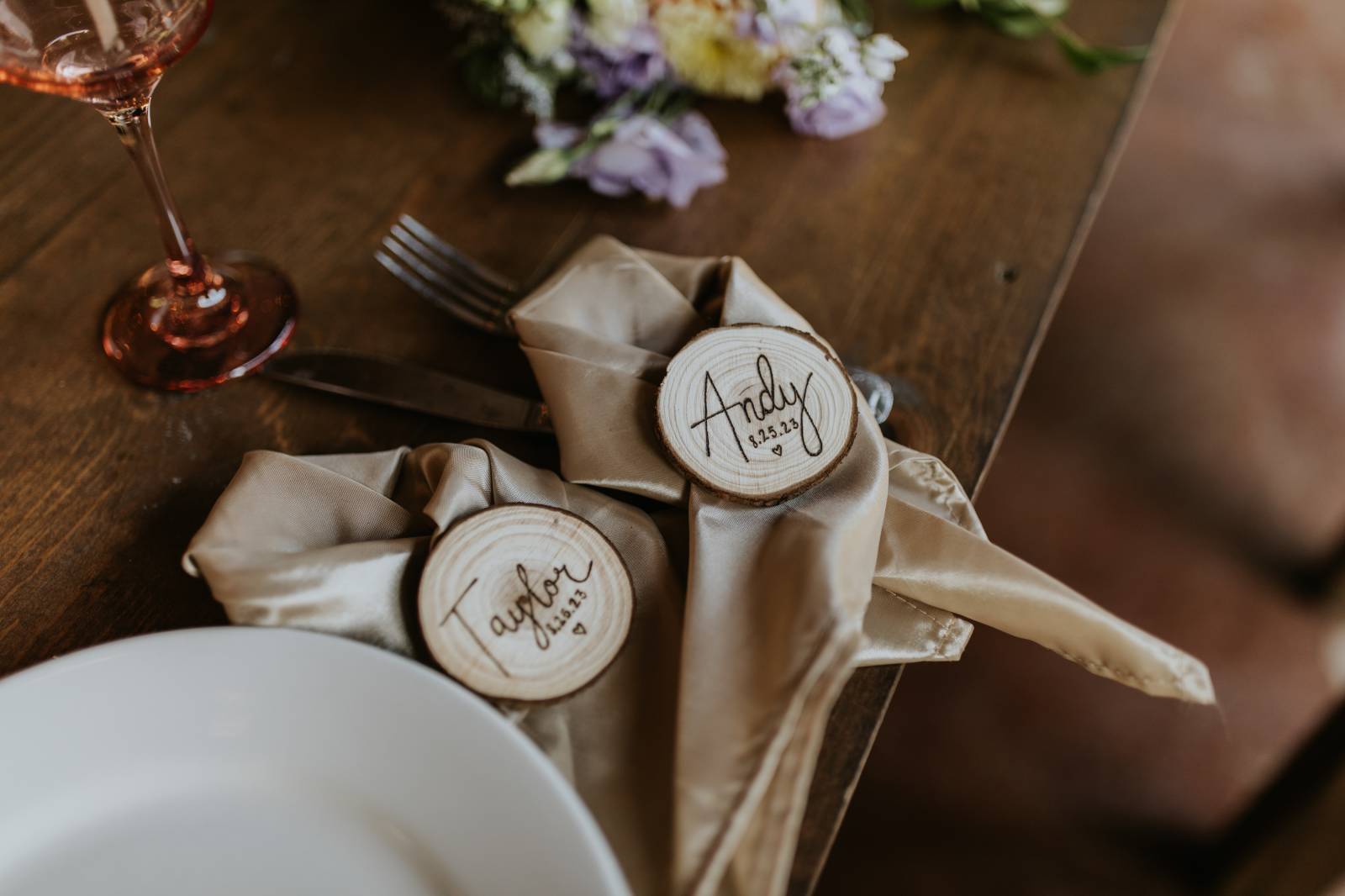 Taylor and Andy were incredibly intentional about making their special day truly about them, prioritizing what would be meaningful to them as a couple over traditions and opinions of others. This led them to incorporate some very special moments and details like booking an Airbnb tiny home the night before their wedding to stay together and wake up together on their wedding morning, having a private reading of their vows to enjoy that intimate and emotional moment with just each other, including their furry friends on their napkins and favors, and even having a friend woodburn every guest’s name into their place cards for dinner seating. Captured by Savannah Steiger Photography, dive into all the dreamy details Taylor and Andy’s wedding day brought below!